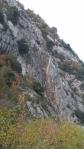 The last few day’s climbing has been focused on seeking out shade – how crazy is that, in late October in the Pyrenees? Alliat is a stupendous crag with some really impressive stamina fests up to 40m long – See the tall brown wall in the picture below. Le Carol isn’t quite such great climbing but sits on the crest of a hill and is shaded by trees, giving pleasant dappled sun. The routes have a very “Peak limestone” feel and I even managed some jamming rash on a fierce fist crack 😦 Pereille provided a pleasant end-of-the-day warm down in an idyllic setting. |