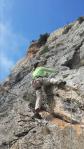 Arriving from Andorra into Spain brings you down the Oliana valley. After a quiet night in a deserted campsite high above the town, we awoke to a chilly morning and characteristic cloud inversion. See Oliana crag shining like a beacon in the photo below. We’d already spent a week climbing in this area a couple of years ago (Including doing all the routes at Oliana within our abilities), so we headed further south nearer Lleida to the crag of Cubells. Great outlook and plenty of sun once the cloud had burnt off. Here’s Helen on Raska Nebraska, 6a |