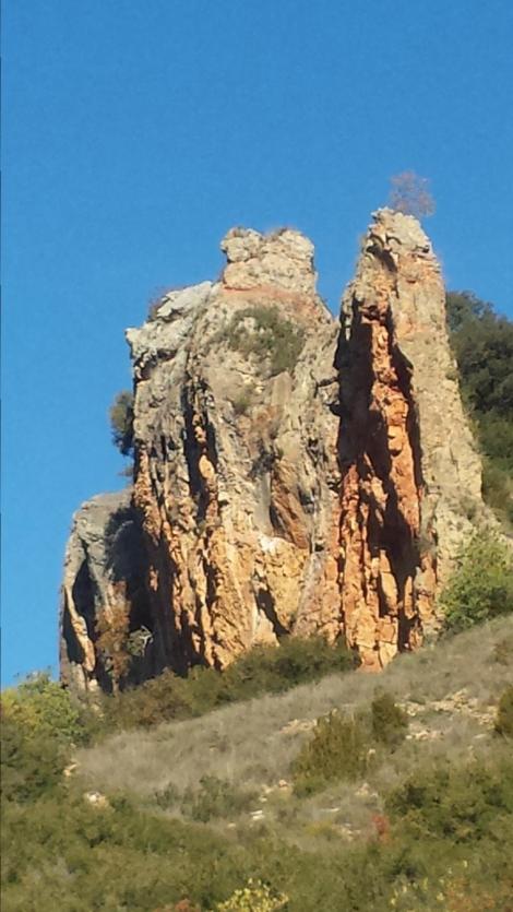 Happily it has a sister crag a couple of km down the road which has more reasonable fare (mainly 6b to 7c – it’s all relative! ). These are on excellent featured rock at a slightly overhanging angle. I managed a couple of 7as and most of a 7a+, so the most productive day’s cragging yet.