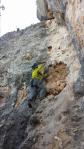 A trip to Tartareu offered what looked to be a winning combination of a good mix of grades and steep pocketed rock. It delivered on both counts, but also provided a useful reminder of the importance of reading the guidebook. .. I hadn’t really noted that the crag faces East so very quickly plunged us into the shade and a major chill :-(. Also, perhaps befuddled by the cold I then launched myself up a 6c+ only to be chastened at half height, eventually escaping with the loss of a maillon. Closer inspection revealed it to be 7c+ – foolish boy! Having come to terms with the shade and made sense of the guide we both enjoyed a couple of really good routes on the steep tufas and pockets. |