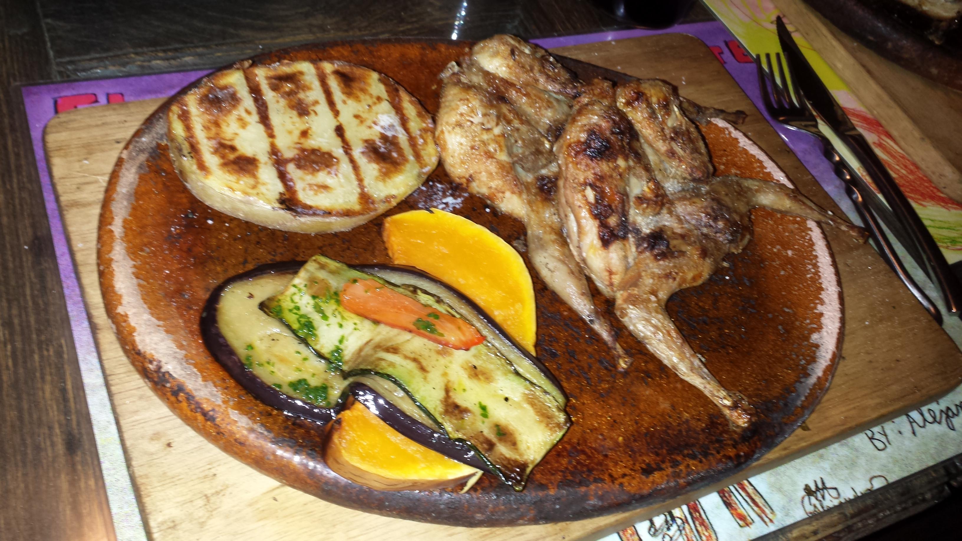An inauspicious damp day at Alcalali wasn’t the ideal way to kick off the 2015 sunrock trip, but weary arrivals made it to the crag after 4am starts and at least managed to get a route or two in before heading to the Swanky Villa. Dinner at El Secreto de Tomate was a real winner. Here’s Helen’s plate of two quails! |