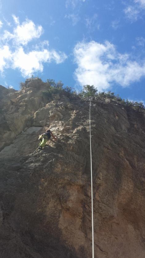Heading gently north we stopped in at Bunol – another of the top 60 crags. … Bunol is most famed for the tomato festival when tens of thousands of people turn up to be pelted with tonnes of tomatoes for an hour! Not this weekend though 🙂 There are 4 sectors spread around a canyon and rocky hillside. We eventually managed to find the climbing tucked away in the gorge, thanks to some very friendly Spanish canyoners who insisted on chaperoning us all the way! Sadly the climbing was nothing to write home about (he says, writing home about it. .) Perhaps the main event was elsewhere. We decided to press on to Chulilla. |