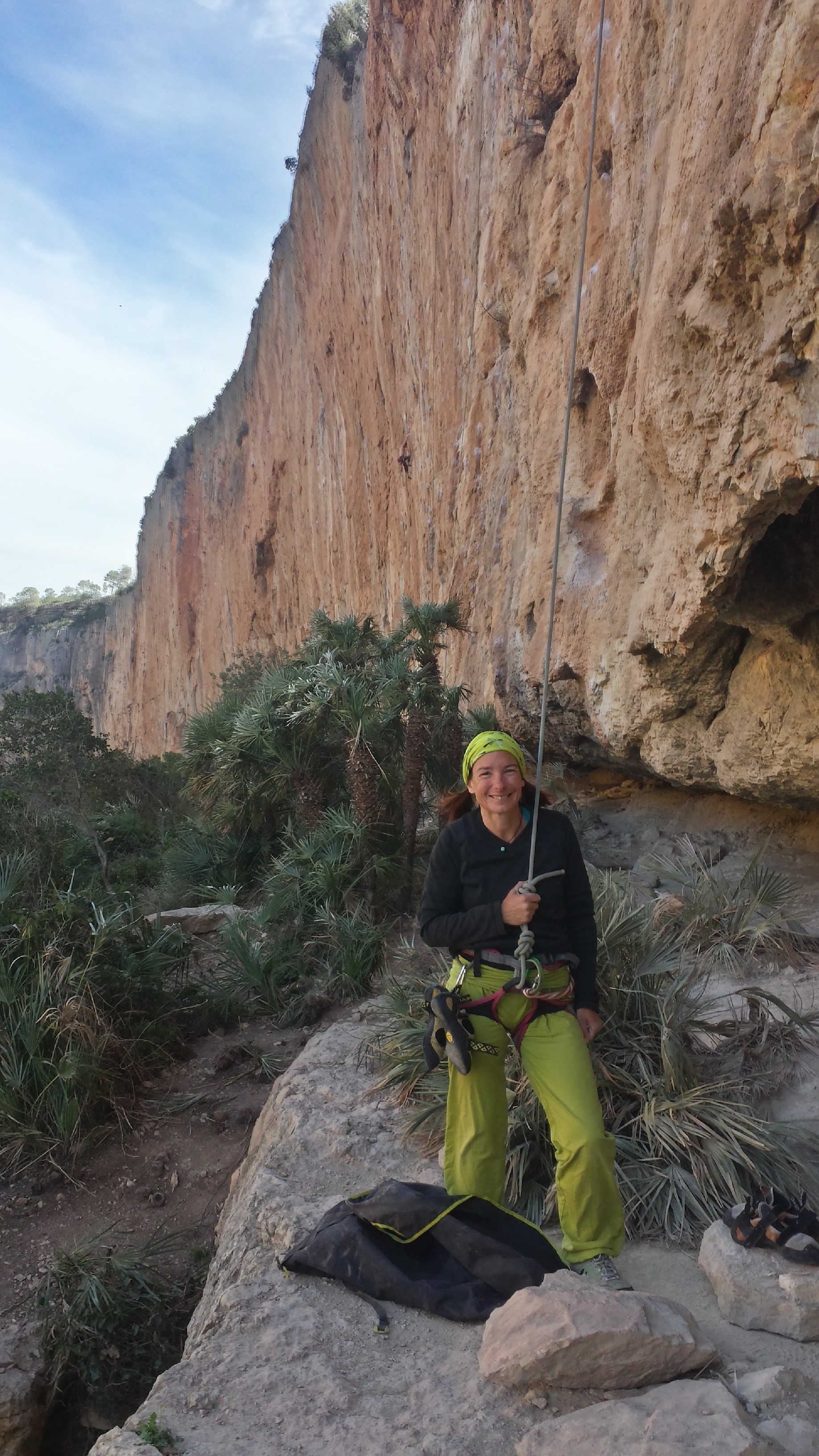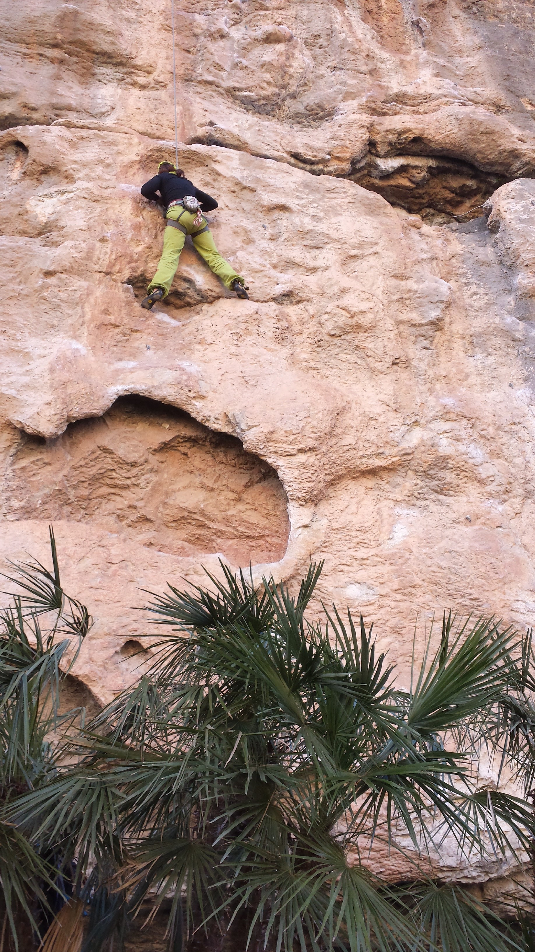 This is where the bulk of the new development has taken place. About 4km of 80m crag, with hundreds of routes that barely scratch the surface of the full potential. After a struggle on the 6b+ “warm up” I was wondering if we’d already missed the boat in terms of over use, it was really slippery! However getting on the route of the crag “El Oasis” changed my perception – simply outstanding. Even better, I thought, was “Plan Z” very sustained and crimpy but nowhere desperate. |