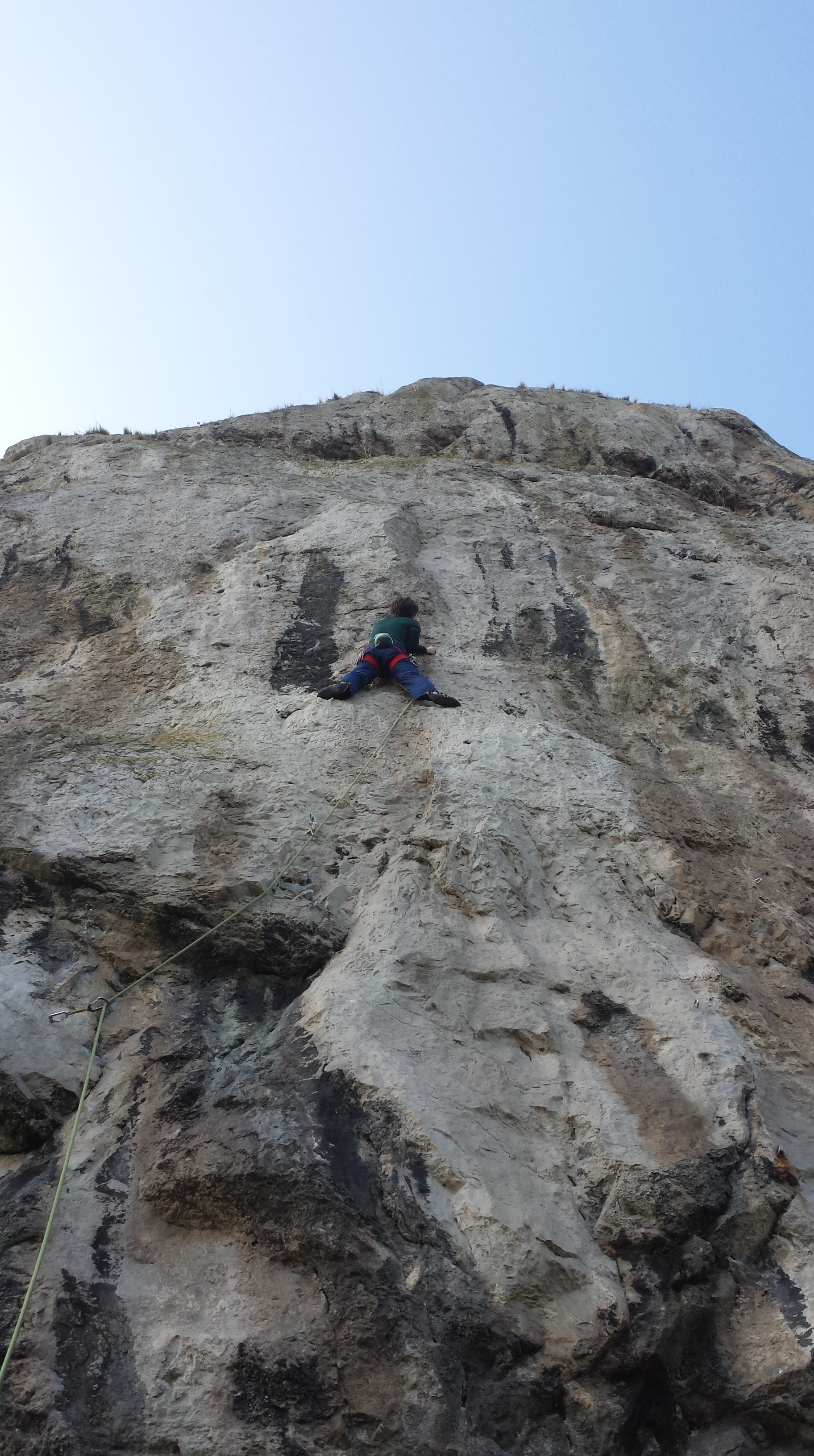 Not a bad time to be arriving back in Blighty – the daffodills are out in the garden and there have been a couple of weather windows to allow some climbing 🙂 The rope gun back from Uni and desperate to get some outside cragging in. Meanwhile I’ve knackered my calf (first running in almost 5 months – not stretching enough…. Should know better) so I’ve been on Belay Bunny duty with Jake.