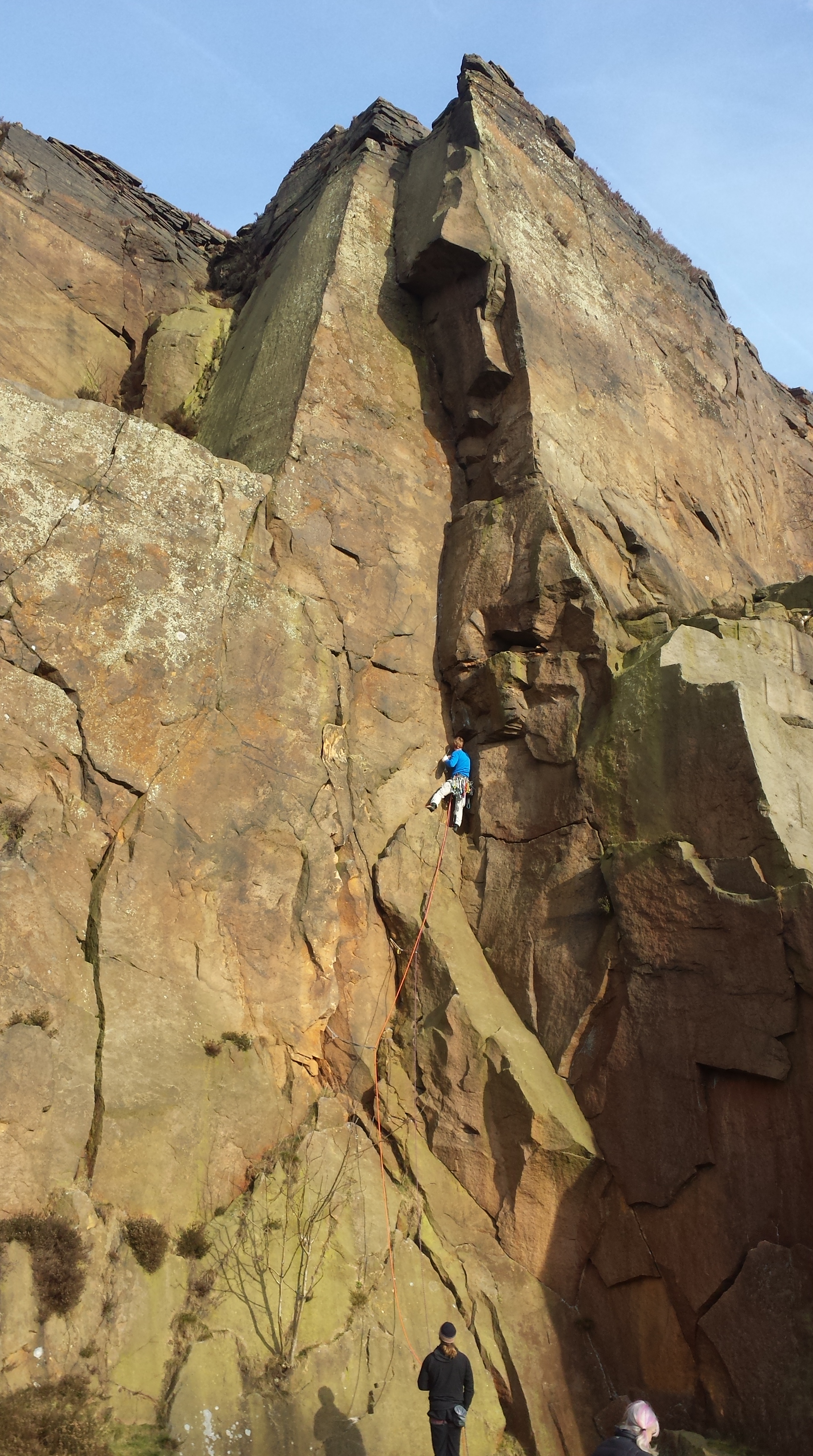 Warby, Chris and Sue are heading to Millstone so I drop by. A couple of VSs and an ascent of the mega classic Great North Road make for a relaxing afternoon, enlivened with some banter with Johnny Dawes (who is recovering from a somewhat more serious leg injury – broken tib and fib!)