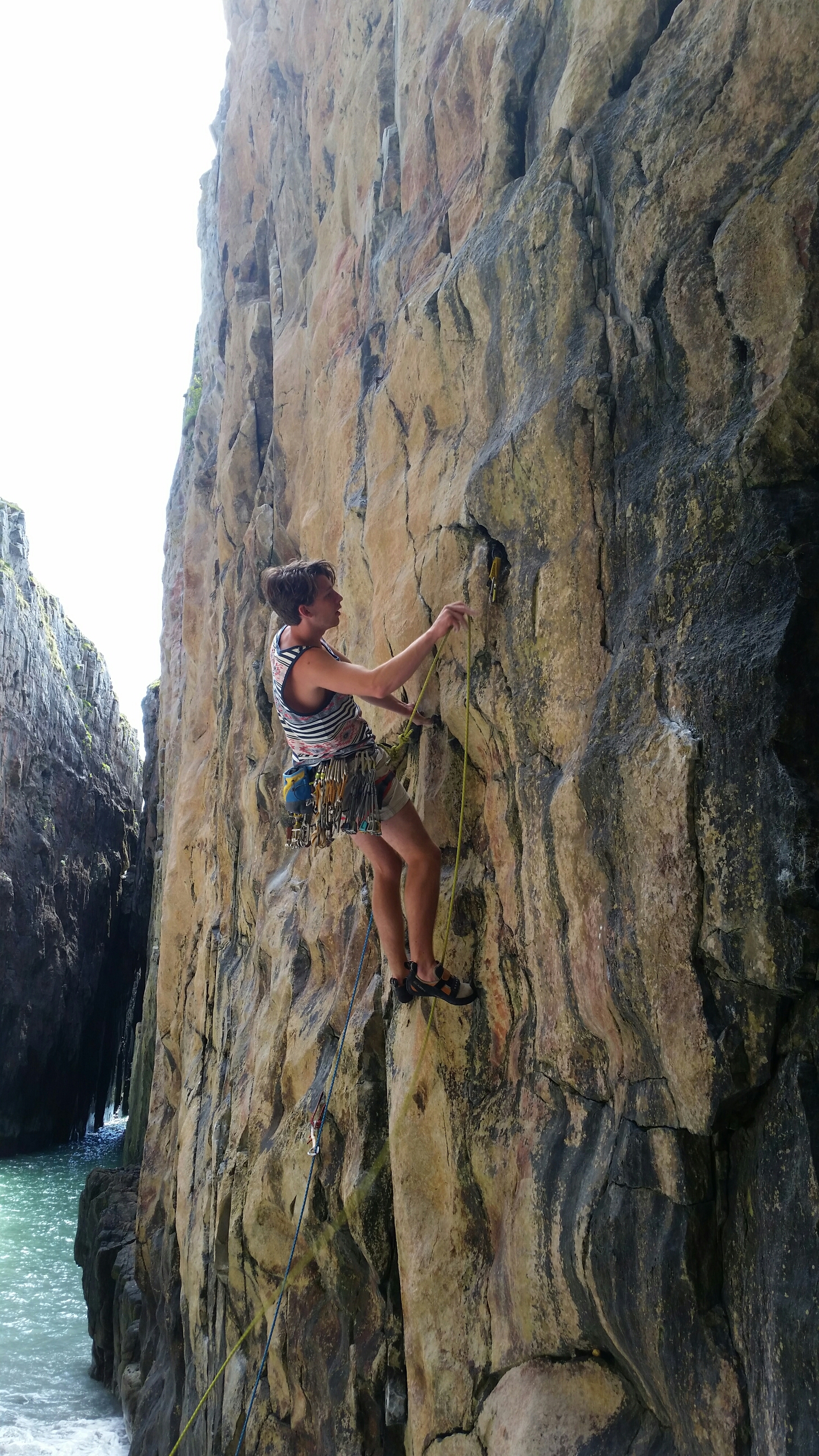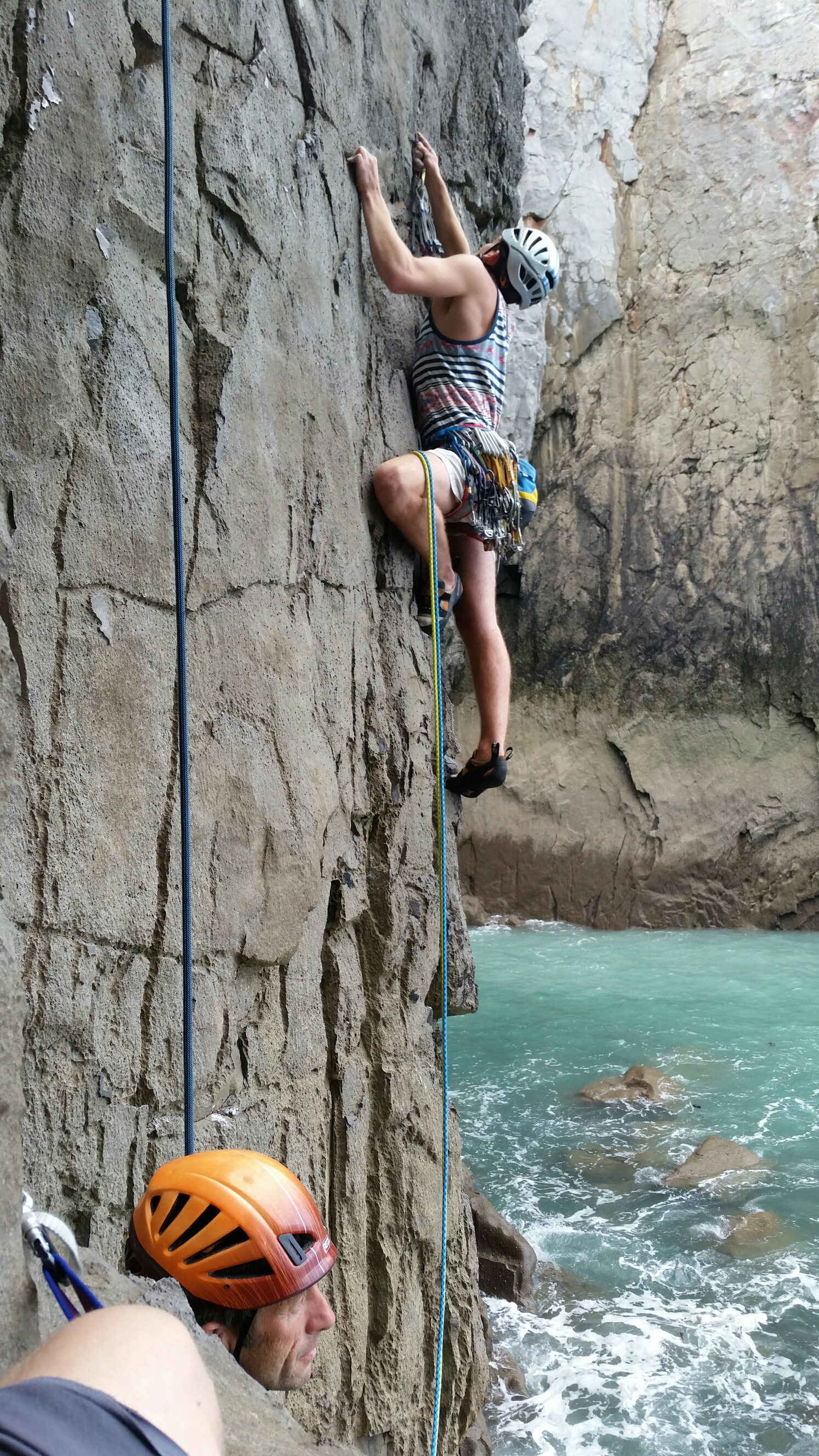 Then Henning made short work of Shape Up for his first trad lead on a sea cliff…