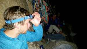 Day 3 has the most enjoyable climbing. Jake and I played to our strengths, with Jake taking most of the free pitches and me doing the trickier aid. We moved really quickly before getting stuck behind a slow but very friendly team on the headwall. We spent about 6 hours stationary here as day turned to night, eventually reaching Long Ledge at 10.30pm. I guess there are worse places to chill out than the lip of a roof 2500ft in the sky.