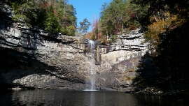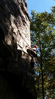 There’s quite a concentration of crags around Chattanooga, and we only have time to sample one of them, so we chose Foster Falls following recommendations from a bunch of Tennessee locals we’ve bumped into over the last few weeks. This turned out to be great advice. The crag runs along the Creek beneath the eponymous Falls in a State Park which surrounds this beautiful spot.