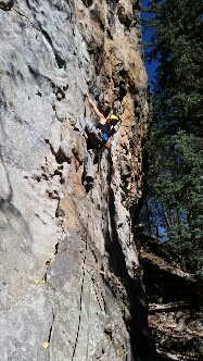 Another couple of miles down the road, and still well over 8,000 ft the Jemez Valley offers more great climbing, this time on rhyolite.