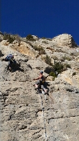 For our first full day we head to Forada. This is a crag of two halves on either side of a 50m limestone fin. The south side is sunny and slabby, with amenable grades. What more could you ask for?