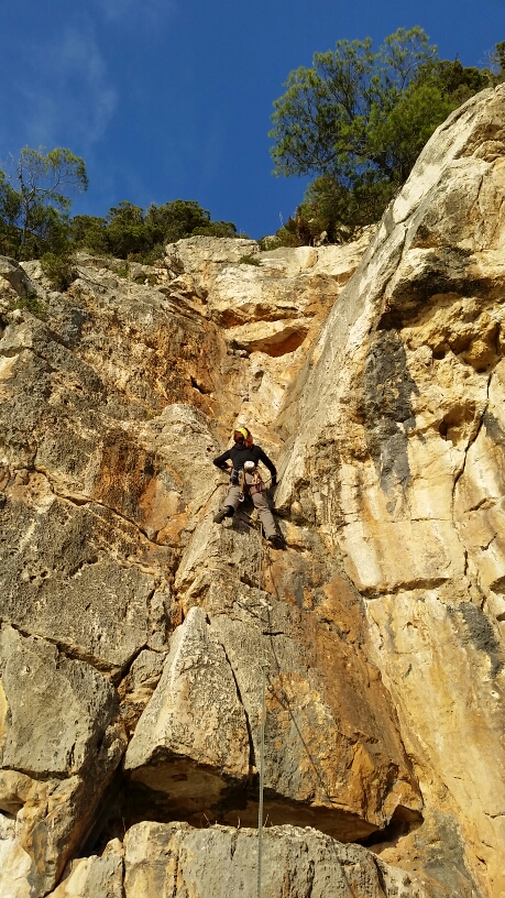 This really is a remarkable spot – what looks to be awesome climbing, but totally inaccessible to mere mortals, turns out to have routes from 6a upwards. And yes, they are awesome – on some huge holds to compensate for the steepness!
