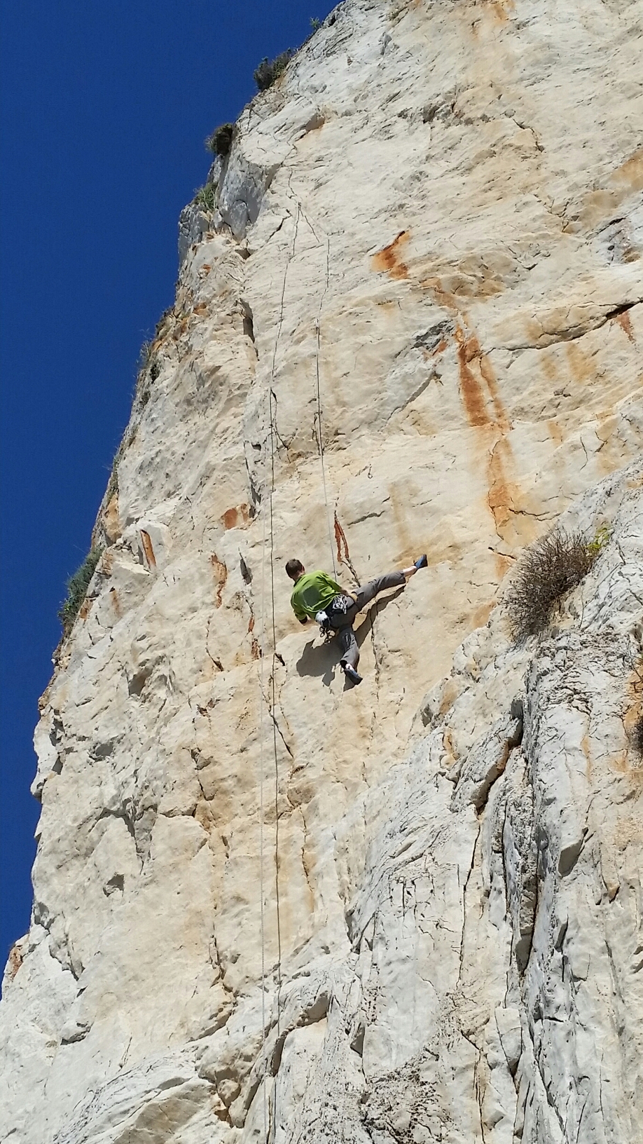 Moving on to “the best 6c. . .” This turned out to be a very newly established route up an impressive white pillar. Should have read…. “destined to become one of the best 6c s in San Vito once the holds have stopped falling off and the jungle approach has been tamed!”