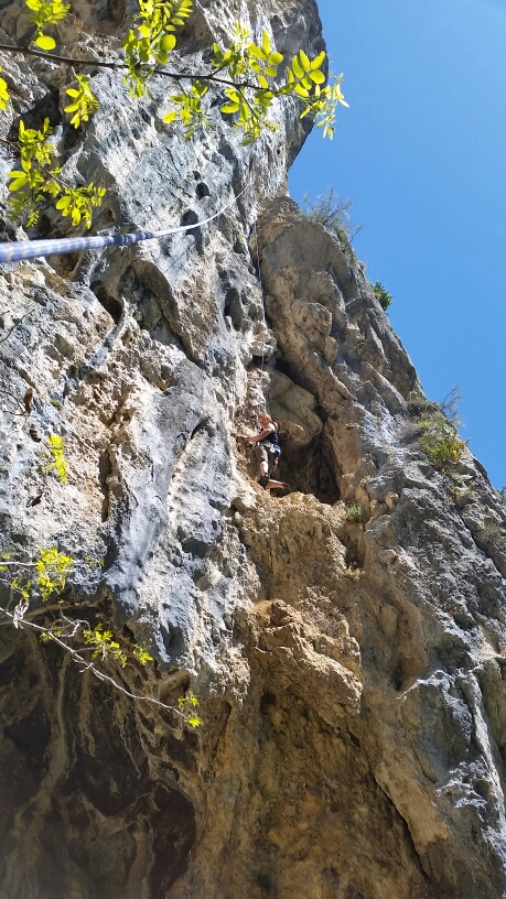 Actually, I wimped out before taking a hiding. After being lulled into a false sense of security by a very straightforward 50m 6c I was brought down to earth with a real struggle on a couple of 6b+s (….. my Arse! ) and decided to quit whilst the going was good.