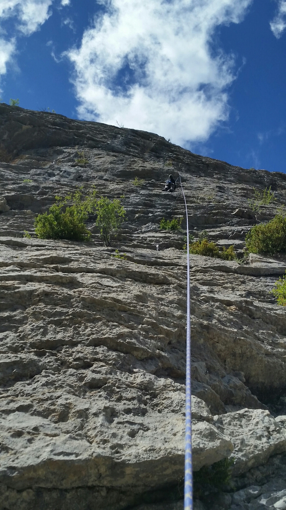 Shady from noon and with a great outlook, but a pity that the rock is a bit disposable and the grades are a bit sandbaggy. I struggled like an overweight Frenchman on….