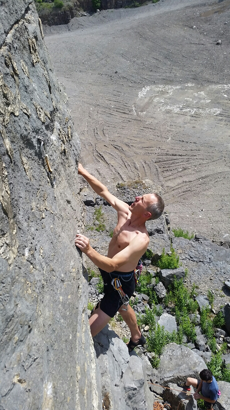 Tuesday threatened to be the only dry interlude in a damp week. Time to explore a couple of Gary’s new offerings near Stoney. Somewhat post Industrial, 5 minutes from the road, and with friable rock tamed by shiny new bolts.