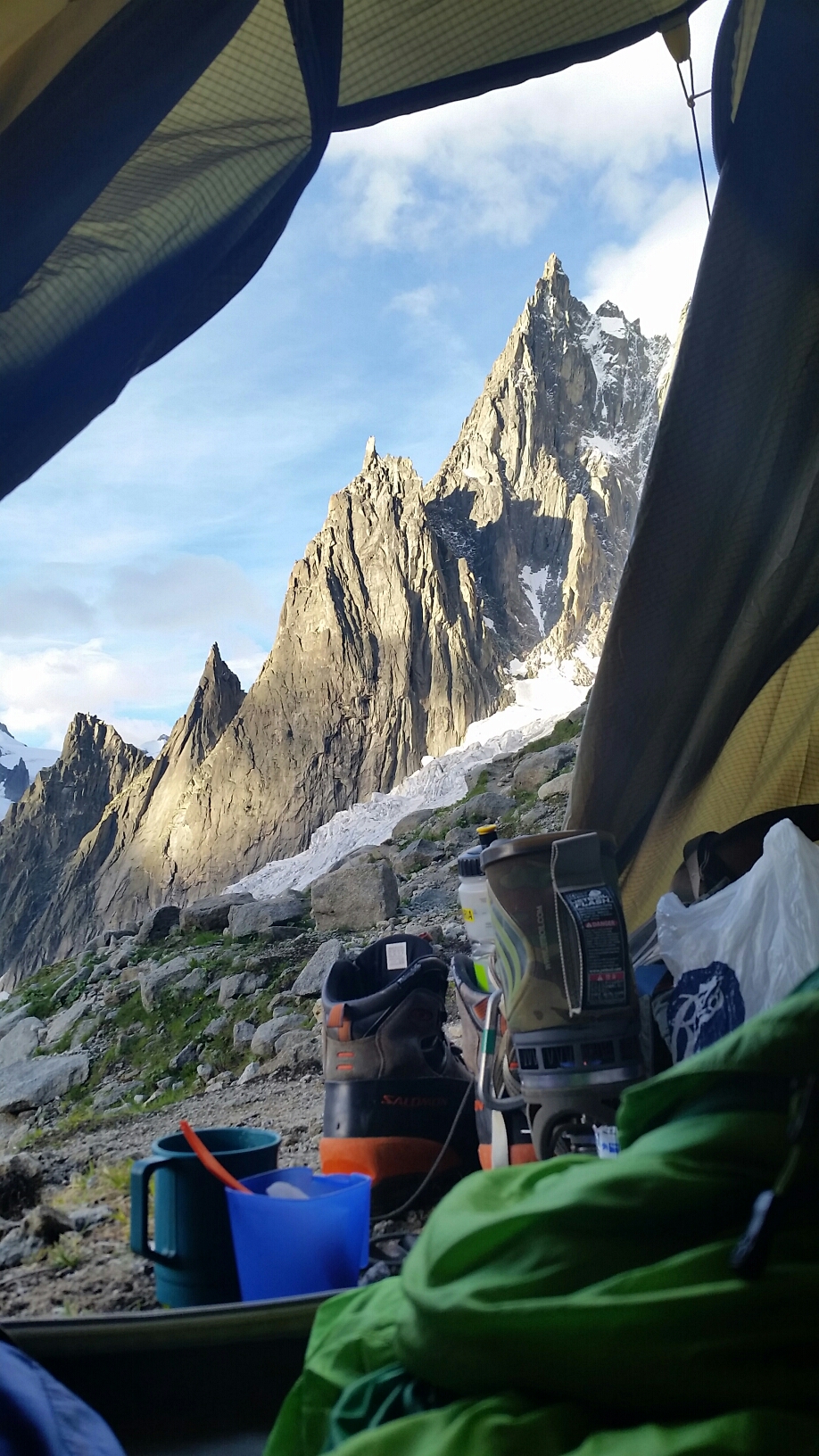 Our bivi spot looked straight onto the route – great to contemplate over the first brew of the day, waiting for the sun to warm the rock.