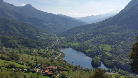 Tucked away in the adjacent valley, Quiros is Teverga’s sister crag – only 15 minutes away, but different in many respects. About 20 sectors are scattered over the mountainside, somewhat more reminiscent of a British crag than a Spanish one. The setting is absolutely gorgeous, with a lake beneath, and views over distant hills and up to vultures circling constantly overhead. There’s also a tranquil parking spot down by the reservoir where overnighting is tolerated.