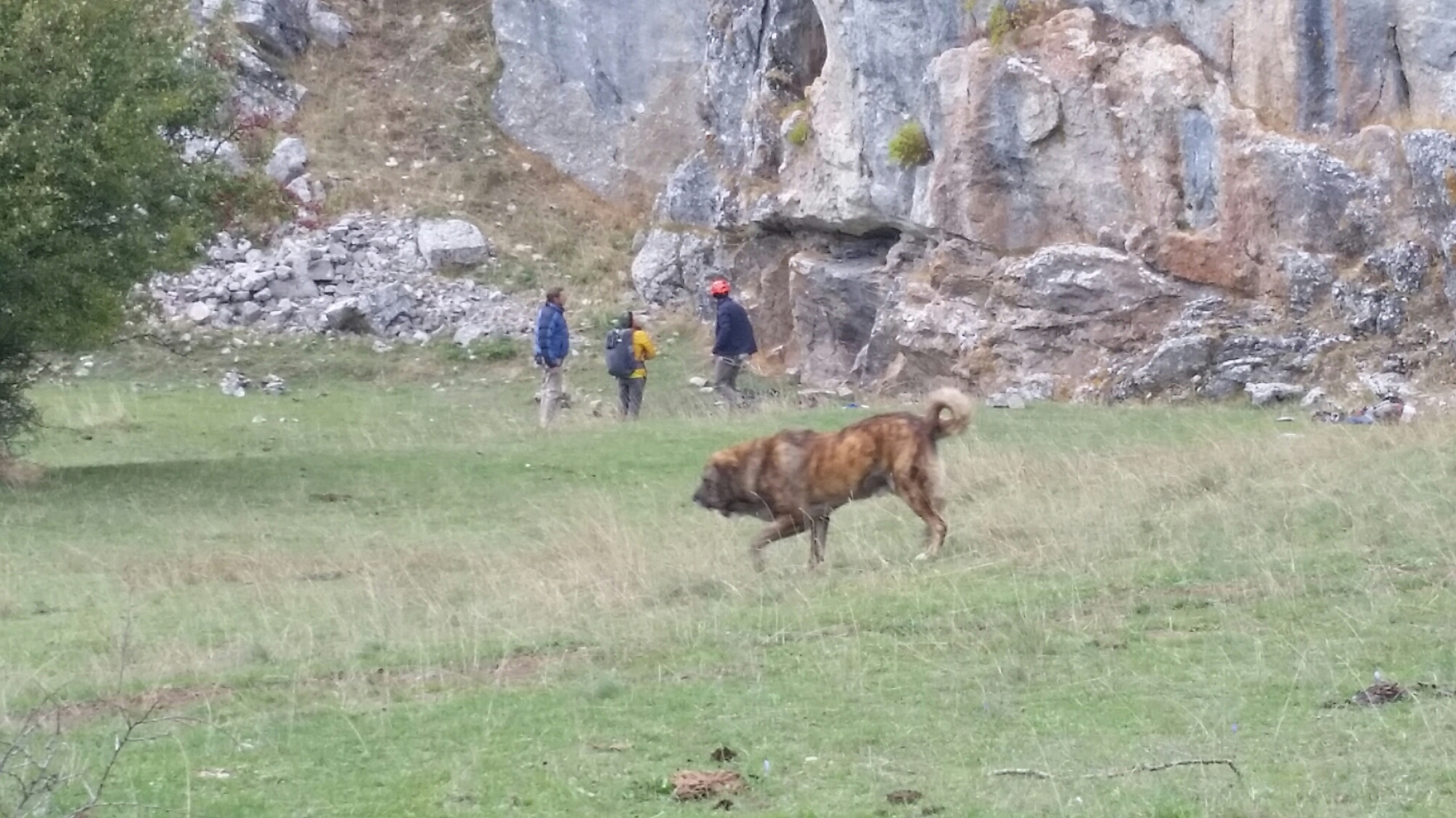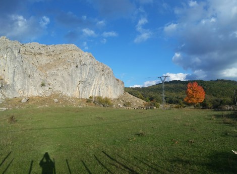 ..based on today’s visit we could have just used grey paint – it was overcast, about 12C and with a stiff breeze. Absolutely freezing! The kind of day that our moto You Either Climbed Today Or You Didn’t was made for. We did a couple of chilly YECTOYDs and fled, but not before marvelling at the great menagerie at the bottom of the crag. There was a profusion of sheep and goats of many hues, some cattle and a few horses, all guarded under the watchful eyes of 4 huge mastiff dogs. These are fearsome beasts from the hell of your imagination. They live in an extraordinary symbiotic relationship with the sheep they tend – passively following them around and lazing on the ground, then fending off intruders and rounding up strays – all without any human involvement.