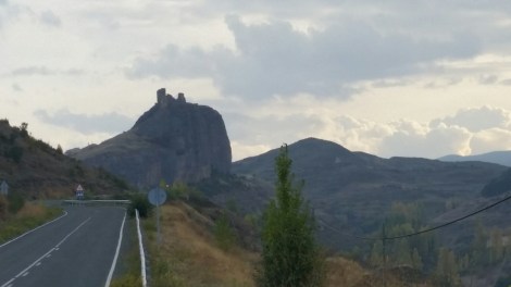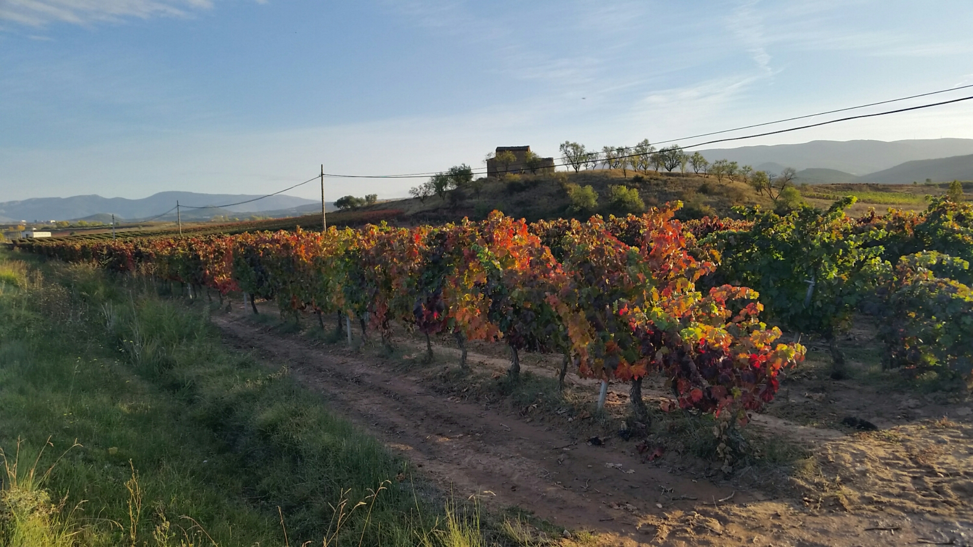 Unfortunately we wake to a chilly and misty day, and forecast isn’t very promising, so instead we press on another hour down the road into La Rioja. As soon as we cross the border, the vinyards are evident everywhere. Still in full leaf, but just starting to turn into autumnal colours, the hillsides are dashed with vivid reds on green, set off by striking yellows and golds from neighbouring trees. It’s a very pretty place – with “The Colours” every bit as vivid as the southern US where we were this time last year.