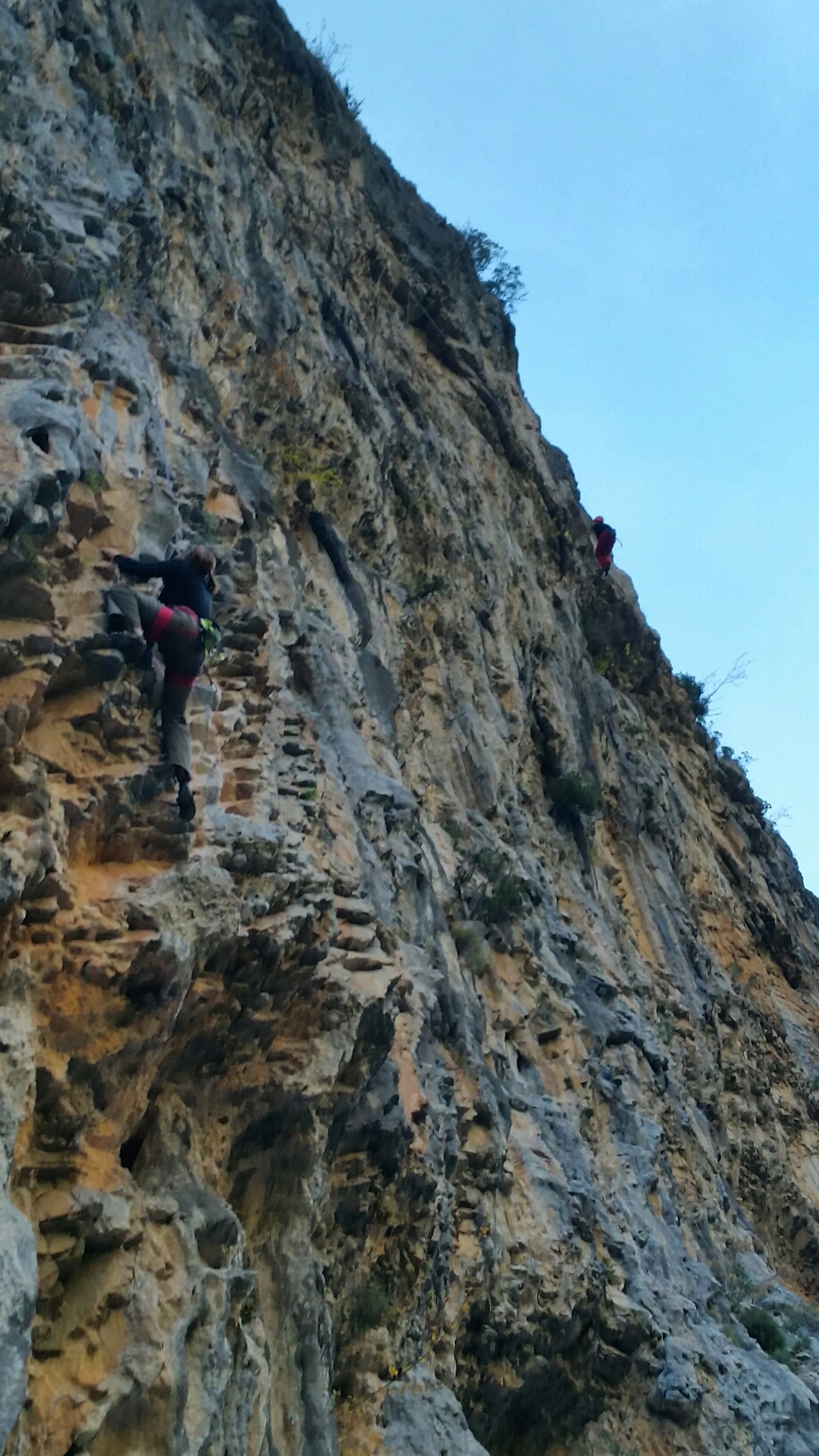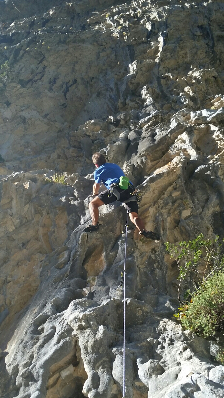 We’d ignored Las Devotas in the German “selected climbs” book we’d been using, as the hand drawn topo and only mildly enthusiastic description hadn’t got us very excited. However I’d just stumbled across a local French topo which made it look much more appealing, and it was 15mins drive and would get afternoon shade. Ideal!