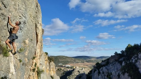 Warming up nicely, so we decided to show our visitors the delights of Os. What great climbing, and such a photogenic spot.