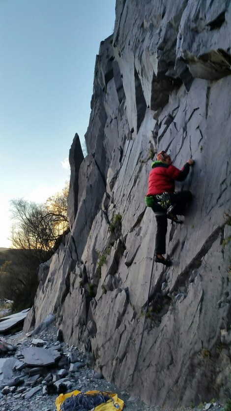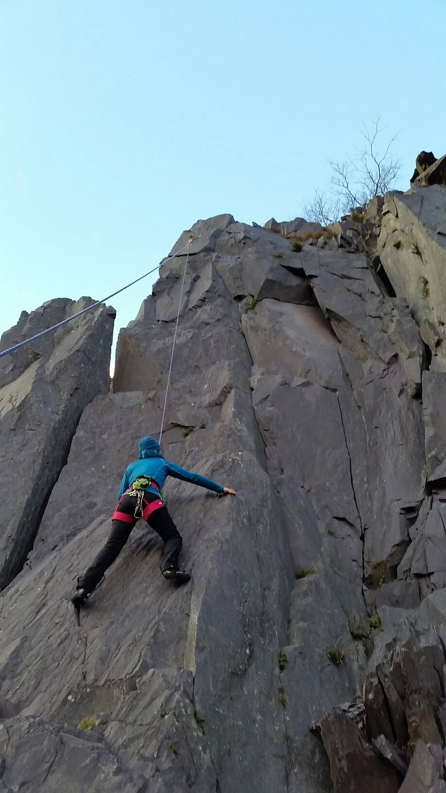 Saturday was very chilly on the slate – I don’t think I’ve ever worn more when actually climbing. Thermal, belay jacket and duvet!