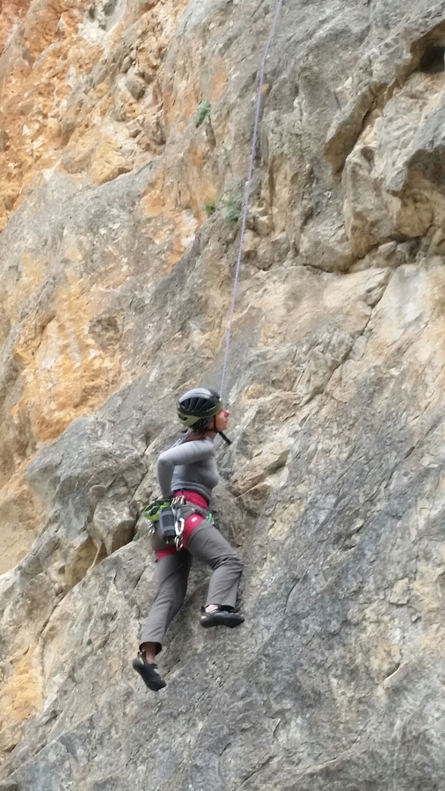 We did a few routes on the Placa Roja, a striking red wall with interesting in cut holds and occasional cracks.