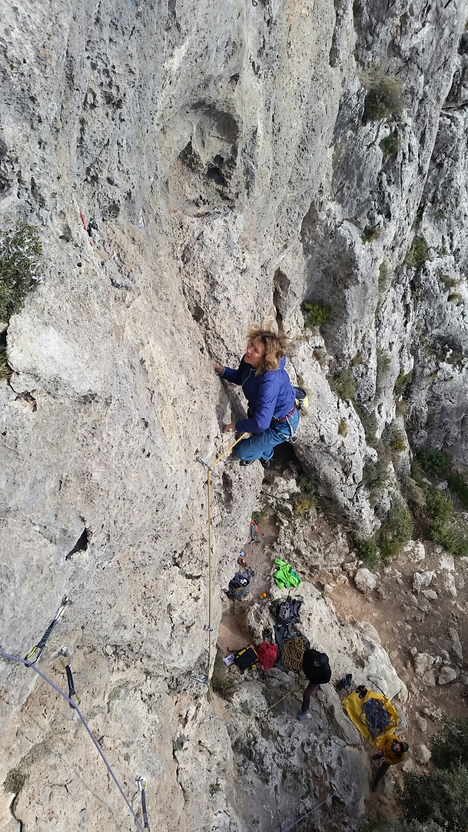 Sunny on the coast, and we decide to explore inland and the climbing around Granada. This great city lies at about 800m so we’re expecting it to be cooler than Motril, but we didn’t factor in the further 400m height gain to Alfacar, where we’d planned to climb. Still sunny, but about 5C and a bit blowy… Great views down over Granada and towards the coast…