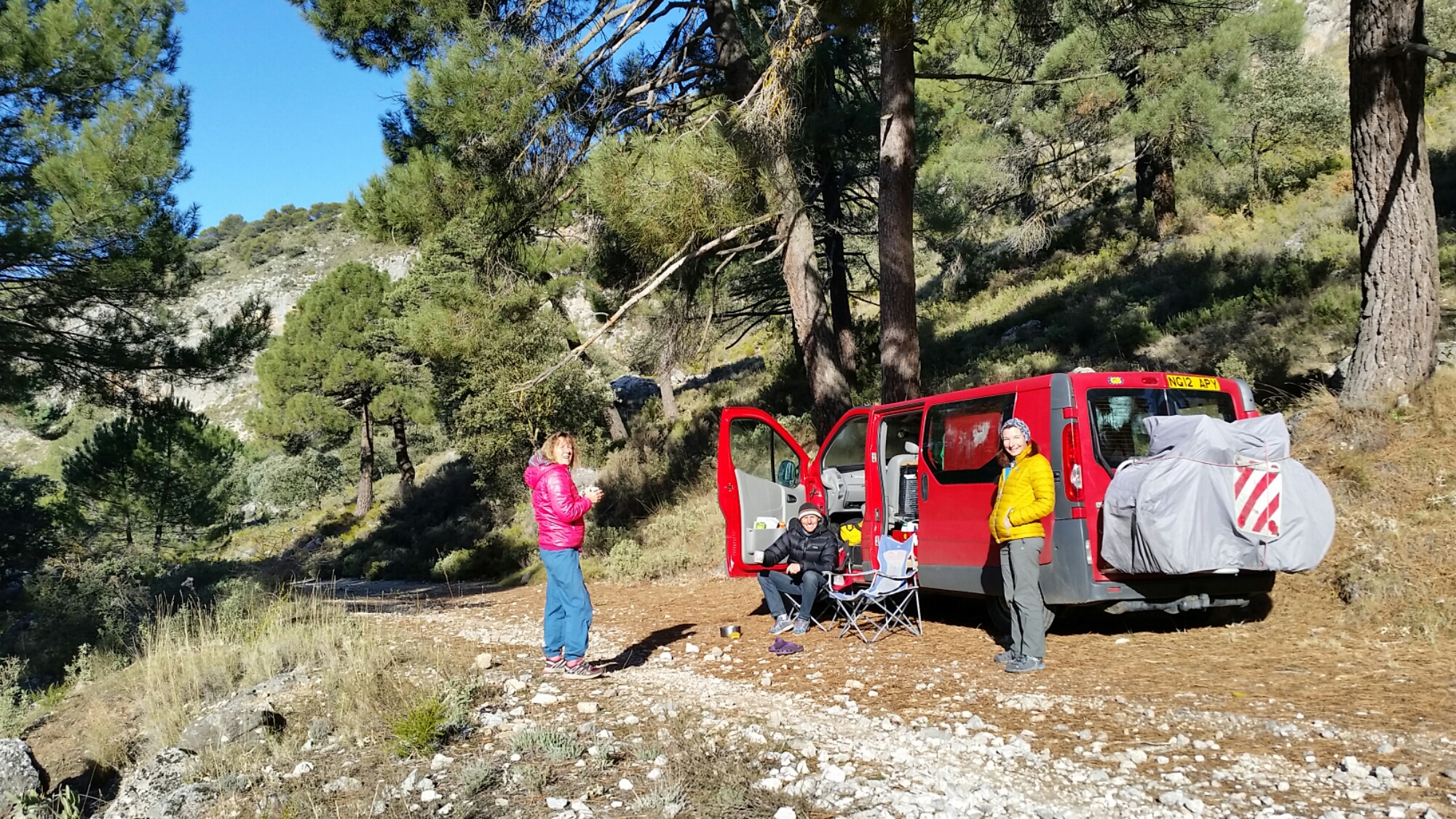 Next day starts sunny but cool (ice on the inside of the van windscreen! )