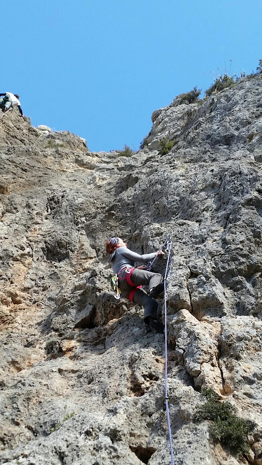 Then the microclimate of solar concentration briefly makes it feel almost warm as I combat Political Terrorista, 7a, though I needed a second go.