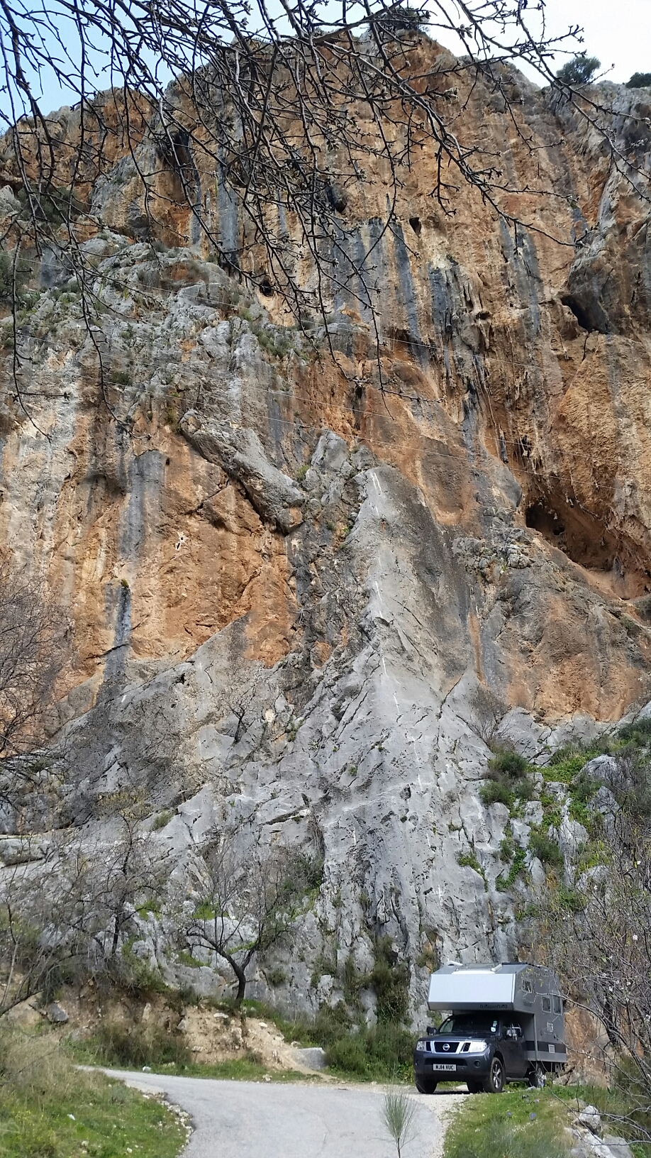 Sunshine was poking through the clouds as we entered Jaen, just 10km from the crag. We’ll be climbing in 10 mins! Wrong! Thanks to an over eager sat nav we spent a nightmarish hour in a maze of one way cobbled streets, barely wide enough for the van and overhung by first-floor balconies. Every turn seemed to spiral us inwards and further from salvation, expecting to arrive any minute at a dead-end and a heap of rusting campervans of previous victims.