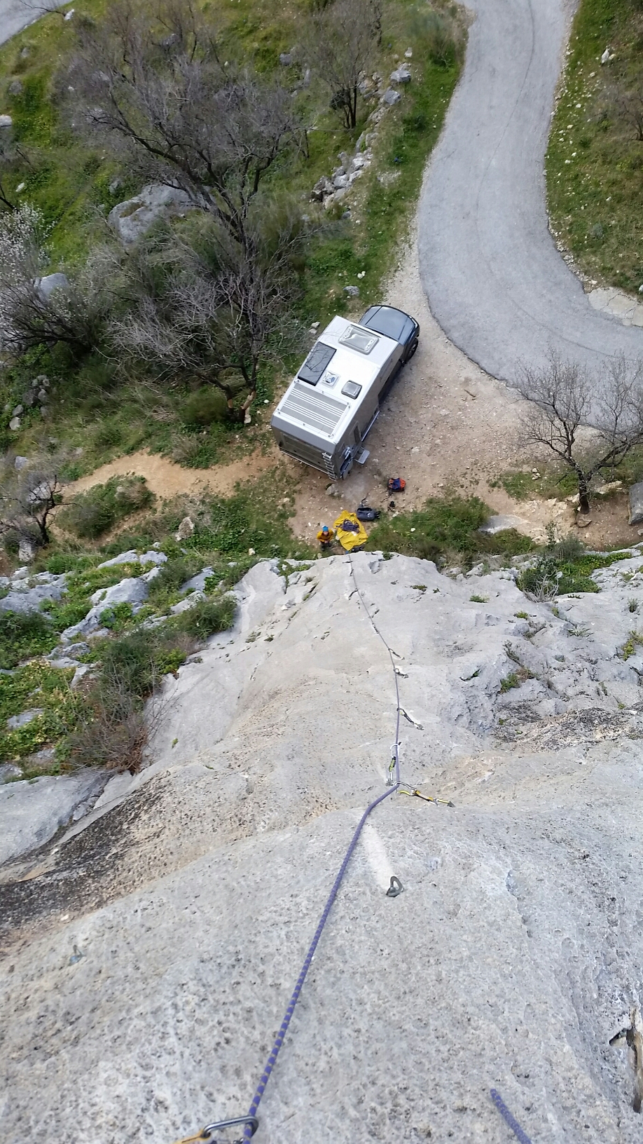 At sector La Curvilla we did a great long route up the obvious ramp feature behind the van (probably La Rampa 6b)
