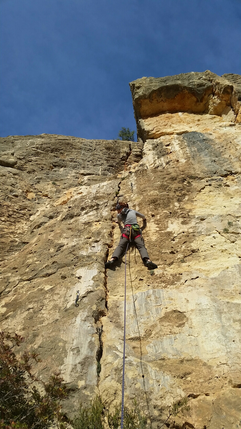 Helen led the very gritstonesque Fisura con Hermosura – not her usual cup of tea, but excellent (bolted 6a here but would get VS at Higgar Tor!)