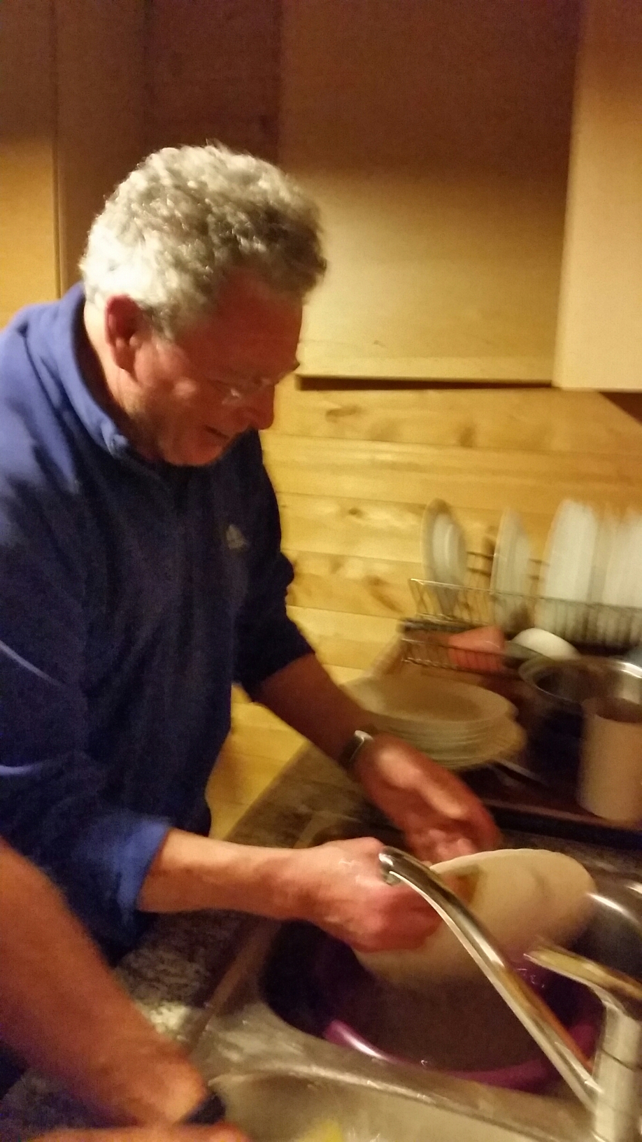 Steve, Geoff, Ian and Mark served up a great meal, and Dr B even had a turn at the sink to disprove the theory that a PhD means you can’t wash up.