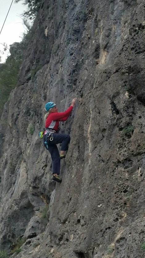 Helen and I had visited this ‘off the beaten track’ crag a few weeks ago – with only a dozen routes, it wouldn’t have suited the whole team, but with a good spread of grades, fine quality, no polish and a sunny aspect promised we managed to rally a lure of cars full away from glorious weather in Finestrat.