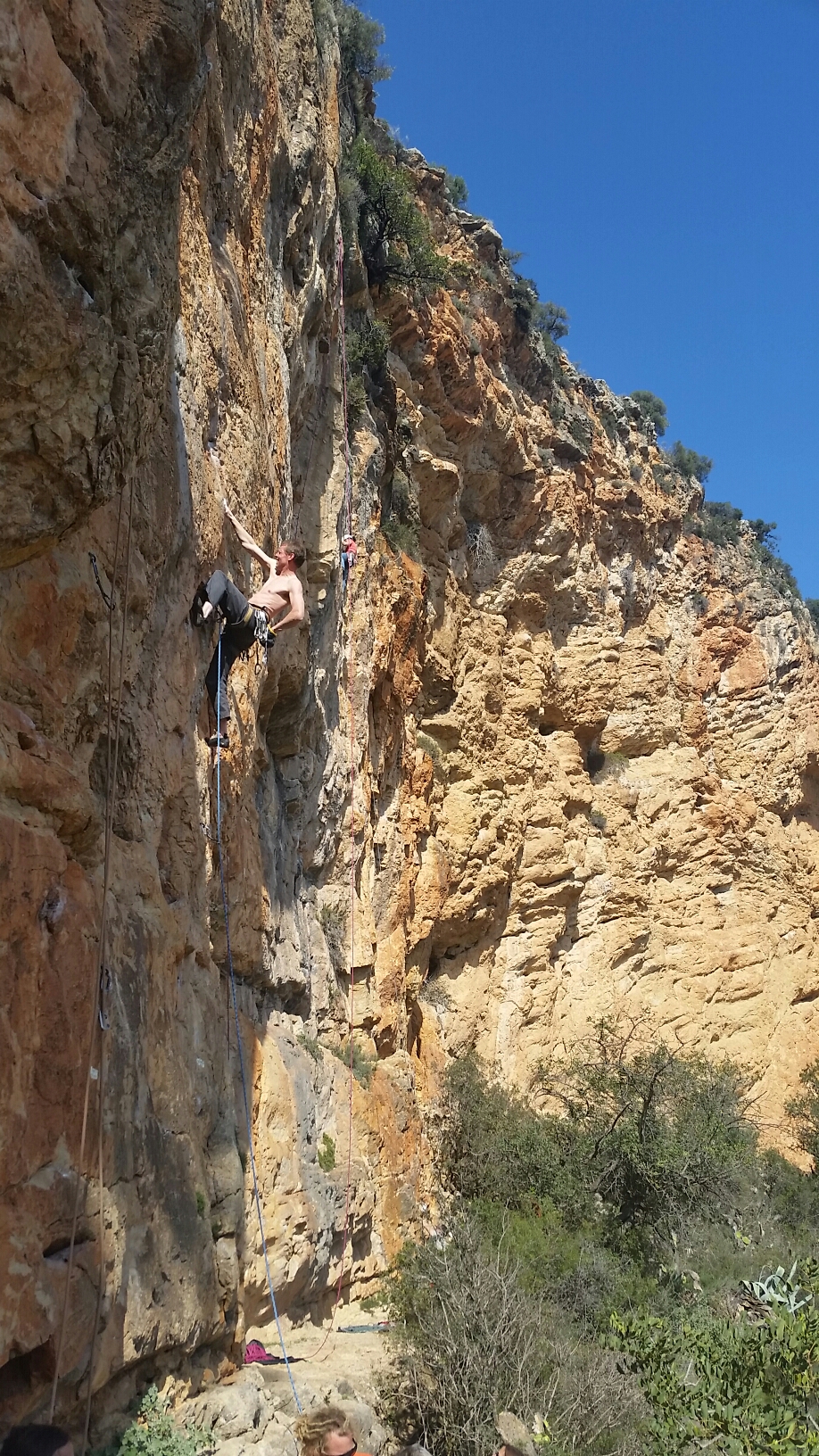 The team disappeared at intervals throughout the day, grabbing a last route if flight times allowed. Rob and Steve had accidentally booked Sunday flights and so we teamed up for a final fling at Penya Roca / Llieber.