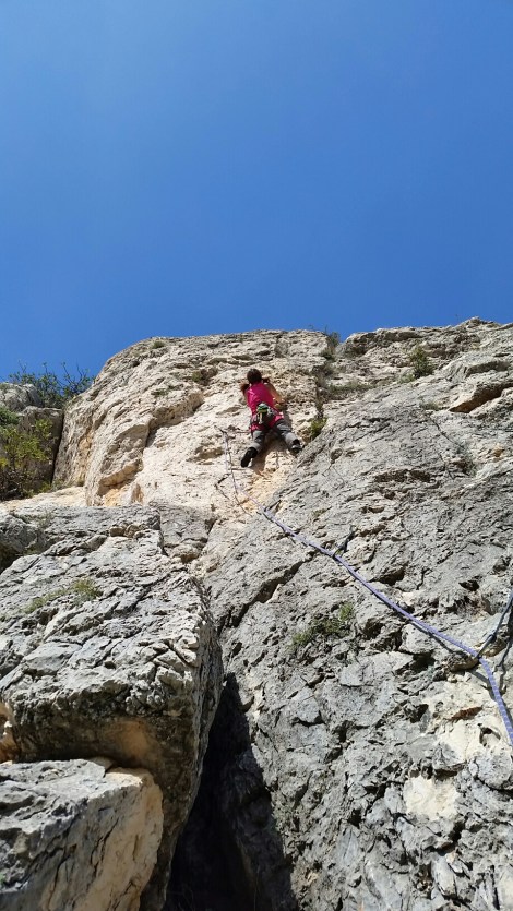 The rock is heavily featured and has some sandstone characteristics, especially near the base of the routes (which can be a bit bulging and polished). The climbing is excellent, across a good spread of grades from IV to mid 7s with a lot in the 5 to 6b band. …but worth having a bit in hand whilst you get used to the rock, as they don’t give them away!