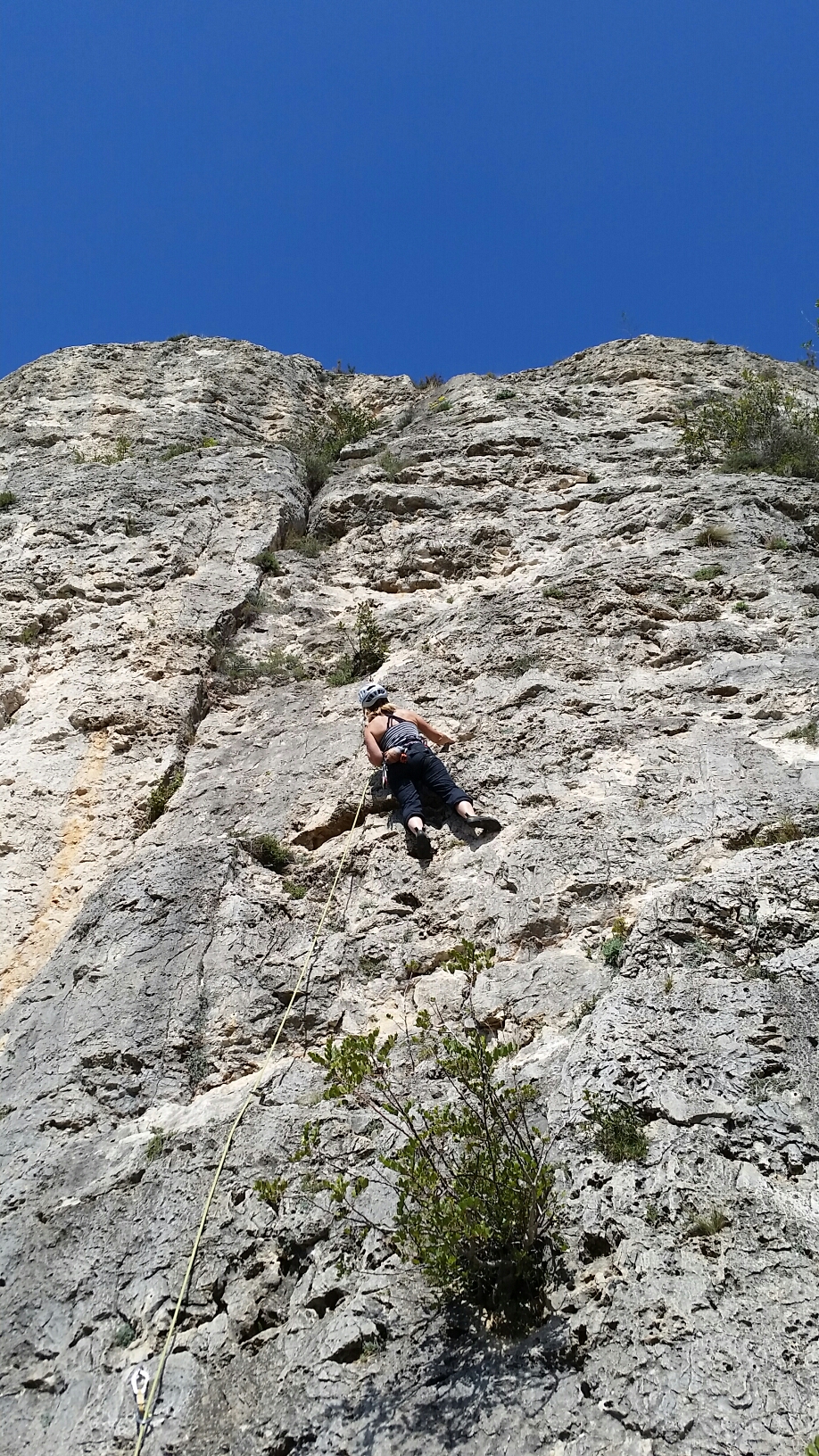 The rock is heavily featured and has some sandstone characteristics, especially near the base of the routes (which can be a bit bulging and polished). The climbing is excellent, across a good spread of grades from IV to mid 7s with a lot in the 5 to 6b band. …but worth having a bit in hand whilst you get used to the rock, as they don’t give them away!