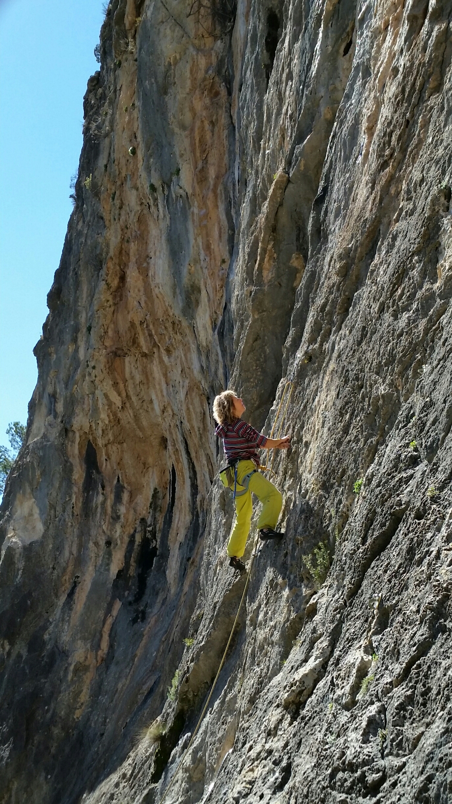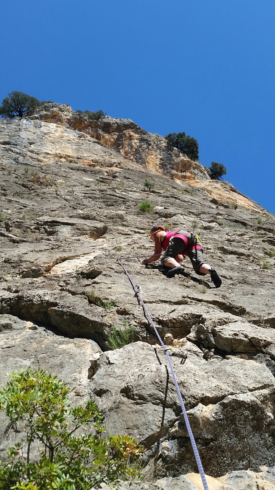 The shade arrived with a bit of a breeze, so we simply switched sides to Las Mazmorras. Here’s Helen leading Licencia para equipar, a 25m 6a