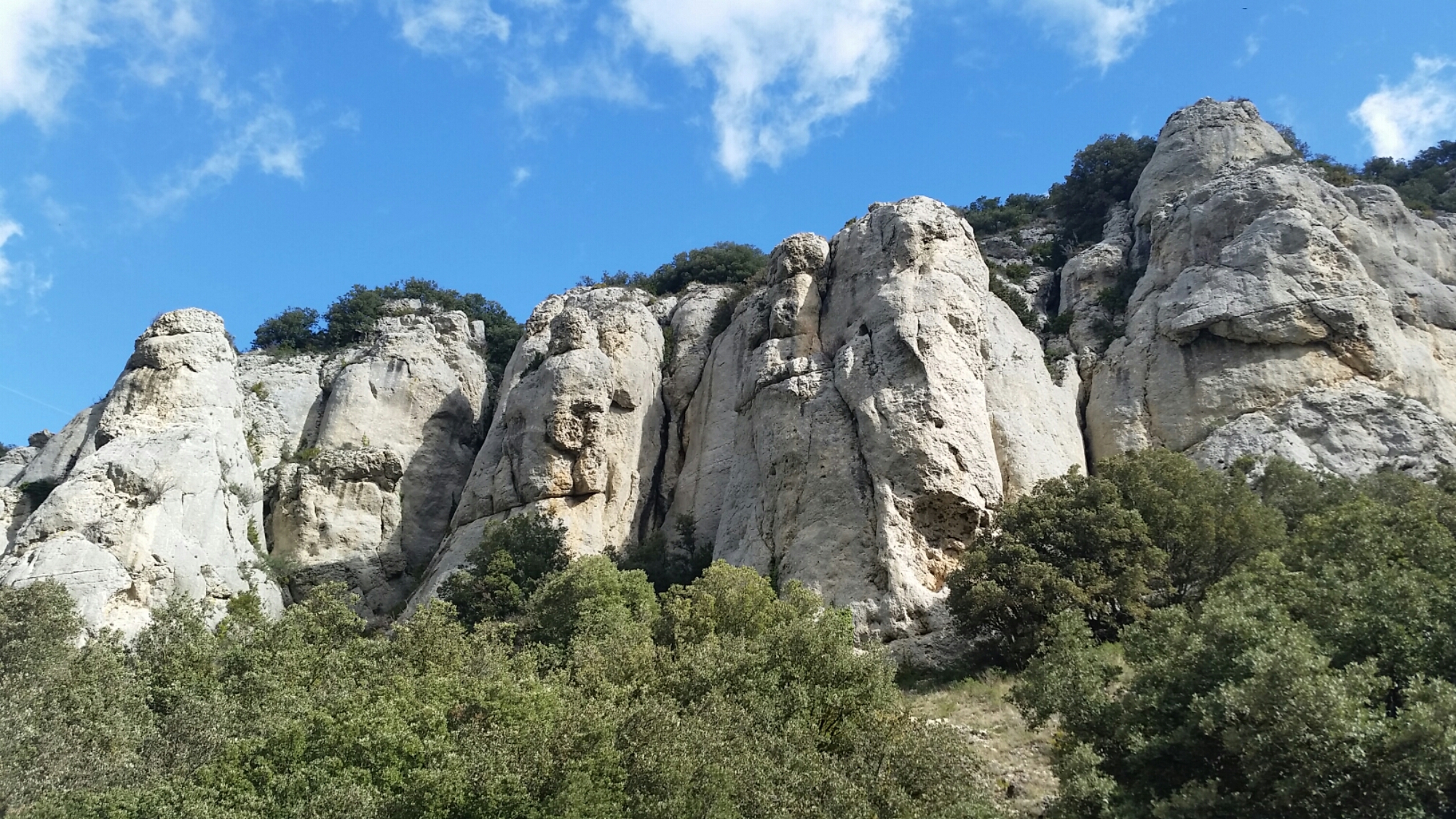 The climbing is somewhat reminiscent of the Alpilles in Provence – grey and slabby on rounded lumpy cliffs. A pretty spot, but not our favoured style, and with a dose of polish thrown in (much like the aforementioned Alpilles!)