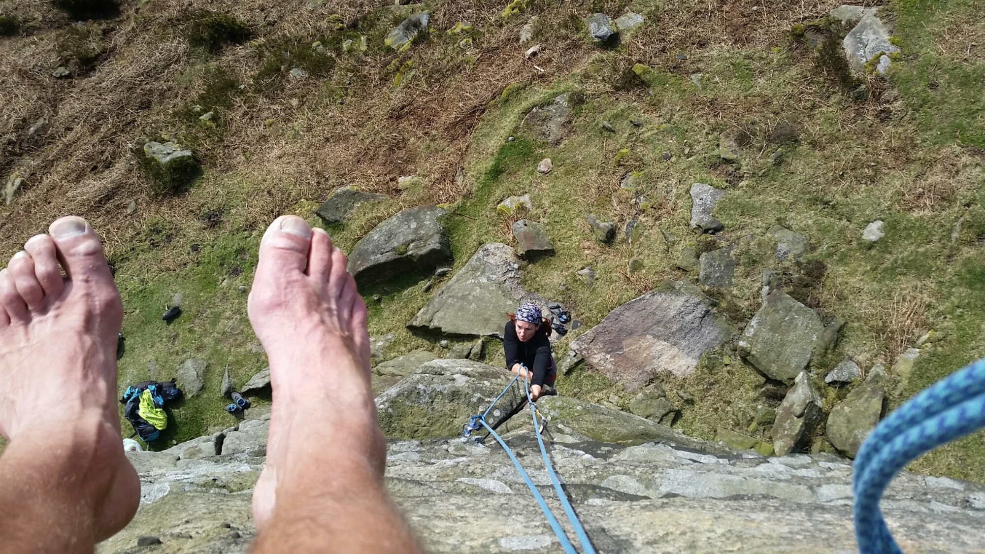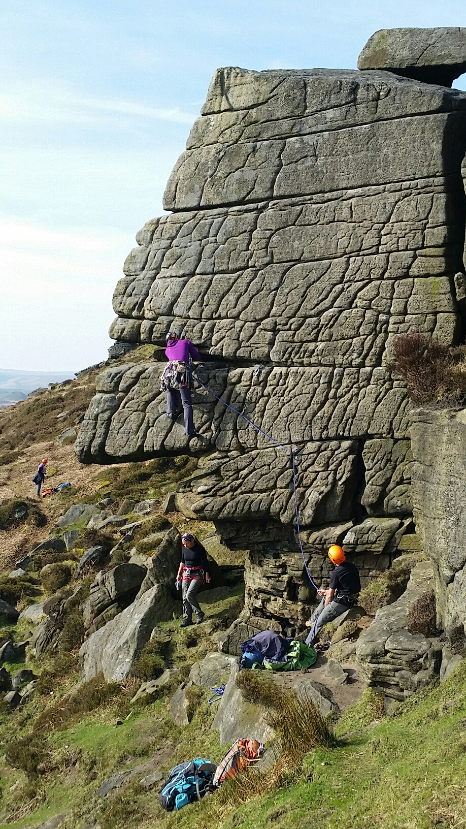 Having inflicted a rammed Stanage on Neil and Maria, we hoped for a bit more tranquillity at Bamford, and there were certainly fewer climbers – still plenty of walkers wanting to take pictures. ..’of you with all the gear – looks really cool’ Aaargh!