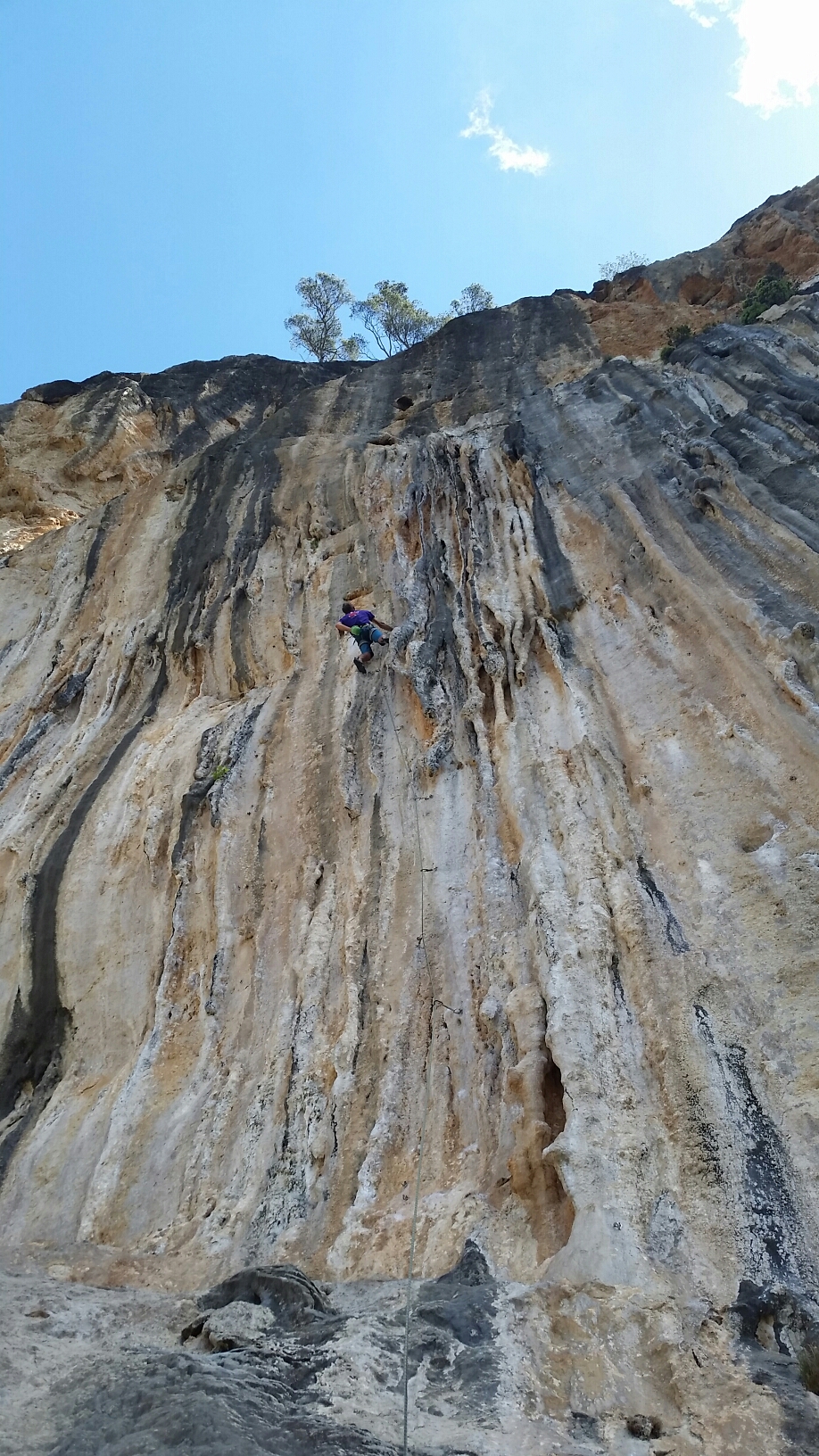 Another hour’s drive and numerous zigzags to cover a few direct miles, and an error strewn march up through the bush found us eventually at sector chorreras. For Jake this was an opportunity to tick another couple of Mallorca’s top 50, but for me it was round 3 of a 20 year grudge match with one of these – Buf, 7a. What a crappie name for possibly a the best tufa on the planet? Two previous attempts had both ended in a heartbreaking slump at around the 29m mark of this 30m route š¦ Would it be third time Lucky or out for the count?