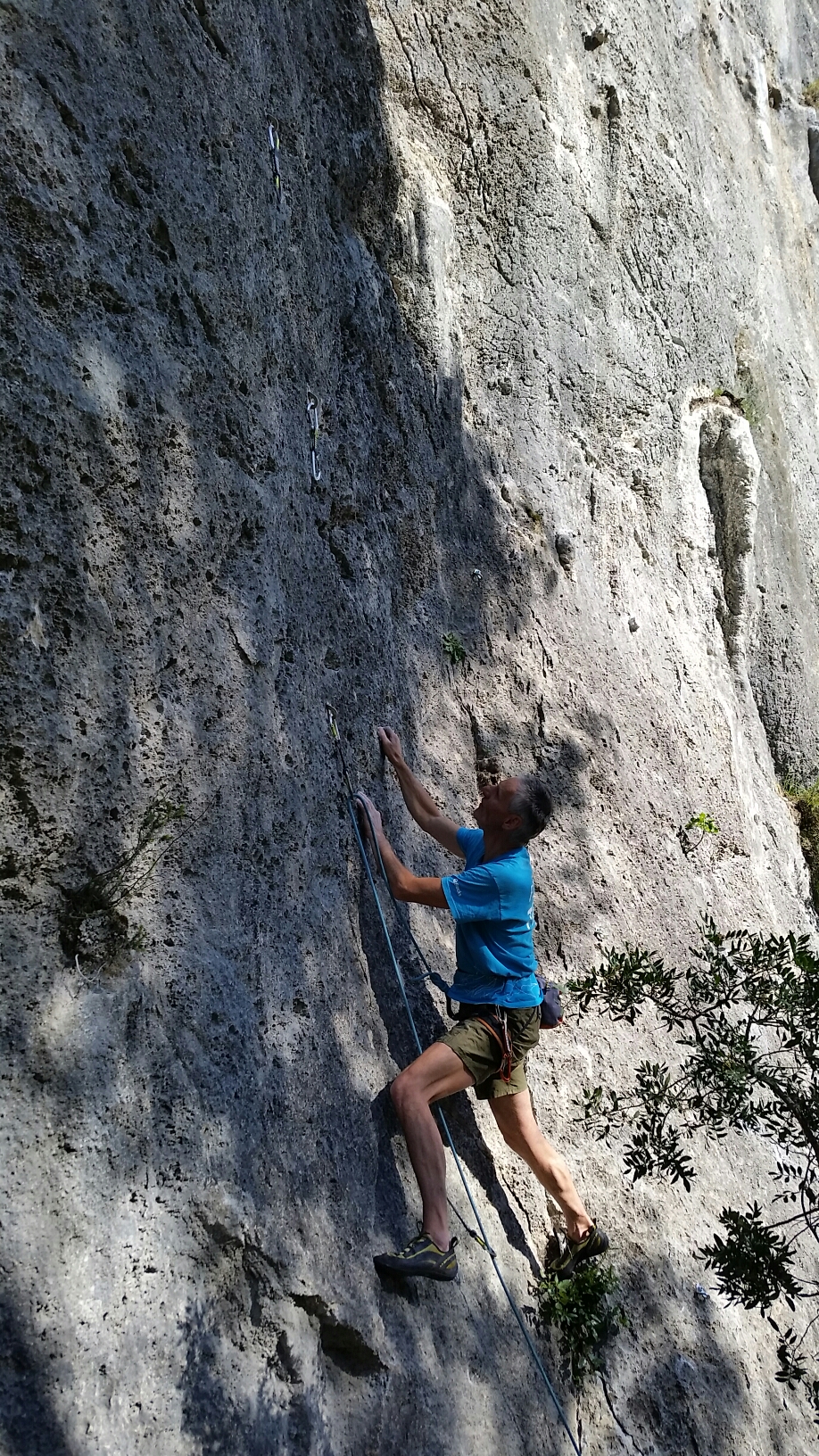There’s been a ton of development at Caimari since we last visited “sector hairpin” and the area now has a tremendous selection of routes across the grades, and a real sweet spot in the low 7s. Once you’ve battled your way past the squadrons of cyclists sweating up the hill (being very careful to give them ample room, but they don’t help themselves when they overtake you simultaneously on both sides when you are hanging back to give the Pelton ahead a bit of room!) and scrounged a parking spot that is!