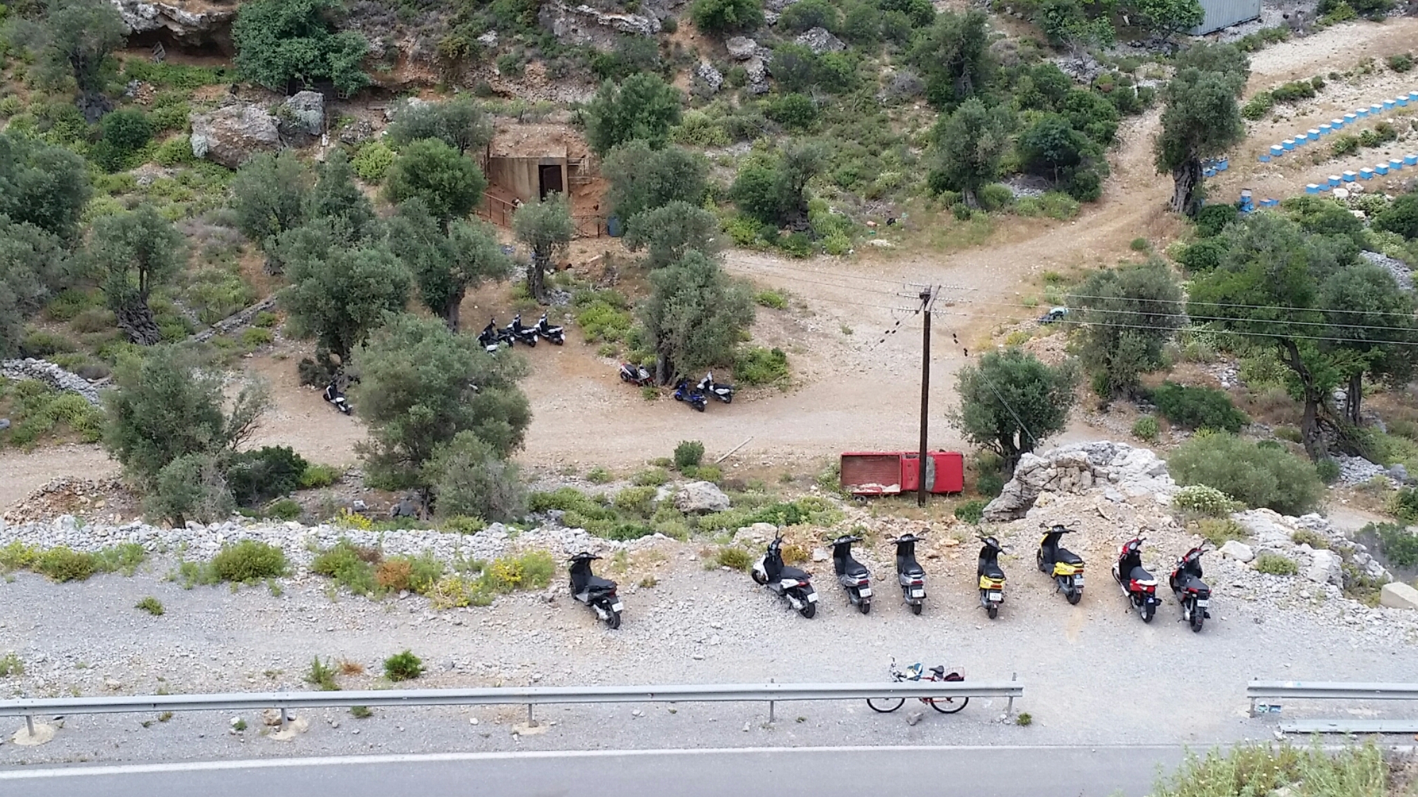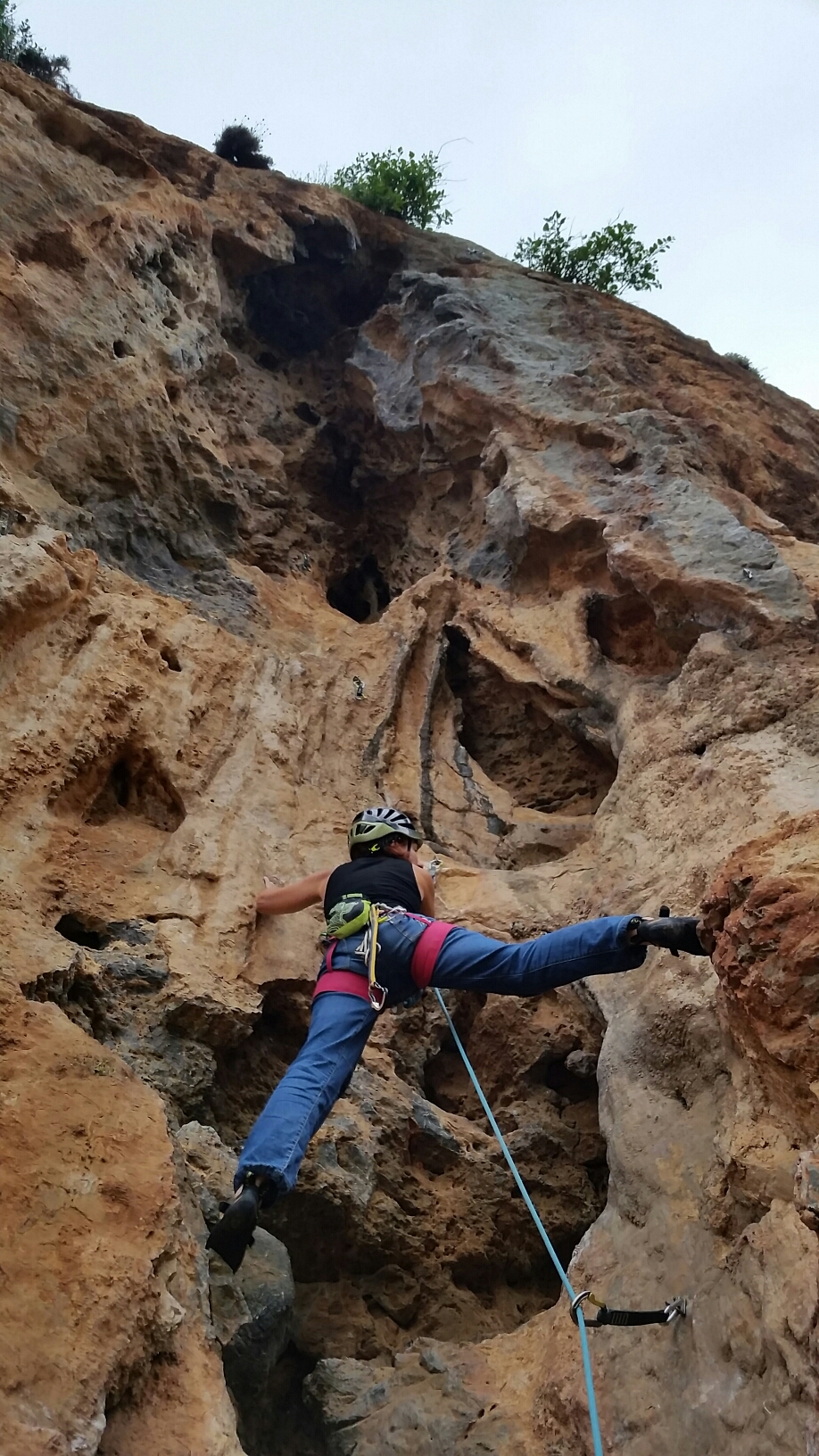 With a forecast for showers and thunderstorms it made sense to be near the road on a south facing crag with the occasional cave. Arginonta main crag, just across the road / valley from yesterday’s venue, was just the job.