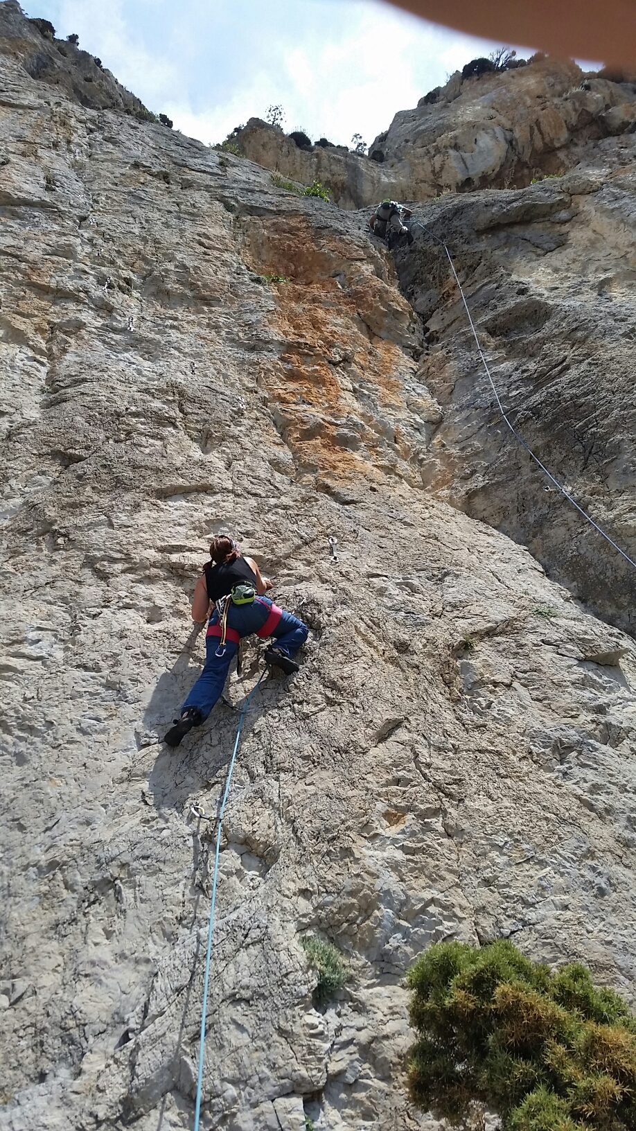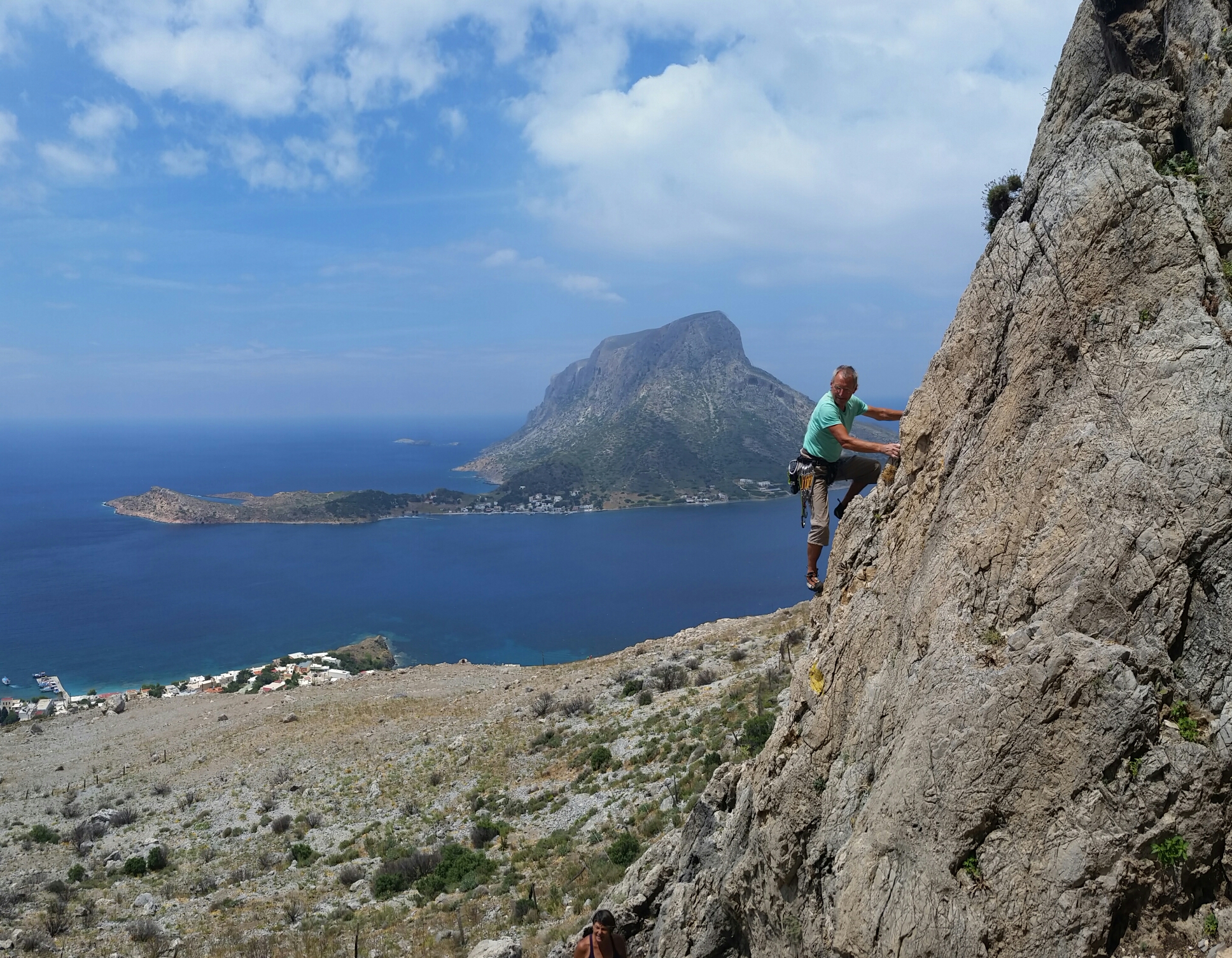 With the storm having blown through, we had a bit of cloud and a cooling breeze so decided to brave a sunny crag. Geriakos came highly recommended by Mike and Heidi, perched more or less directly above our apartment.