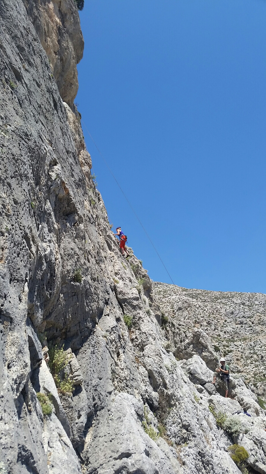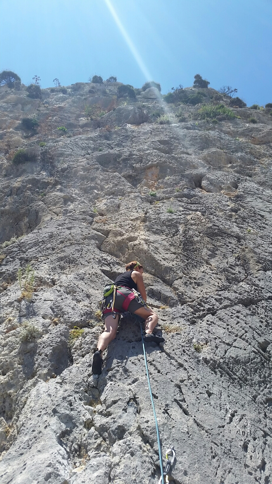 The style of climbing is the complete antithesis of yesterday’s Grande Grotta session – steep slab to vertical wall on VERY sharp rock. The routes are less than 12 months old and still somewhat off the beaten track, so understandably they’re still “settling down” a bit, but with a bit more traffic they’ll be a really valuable addition to the island.