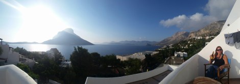 … Then back for a last beer on the balcony, a final sunset over Telendos and dinner at the Aegean Taverna.
