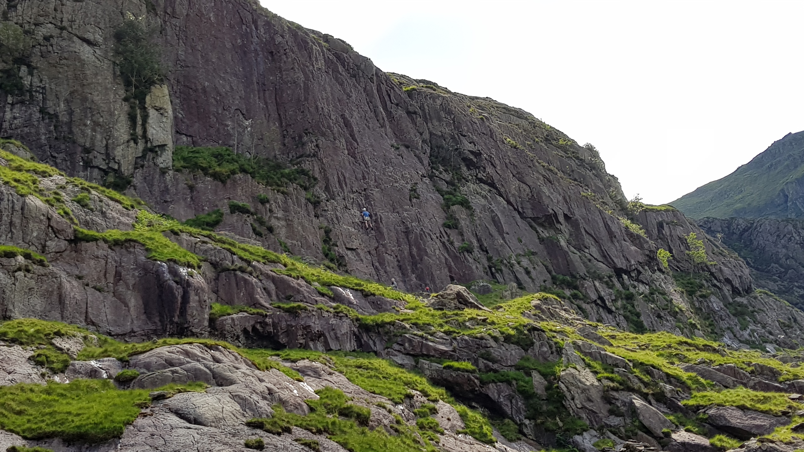 Cwm Glas Bach sits on the south side of the Llanberis Pass, just opposite Beudy Mawr. I’ve gazed up at it numerous times from the front lawn at the hut, but this was the first time we’d actually been up for a look with a rack and a rope.