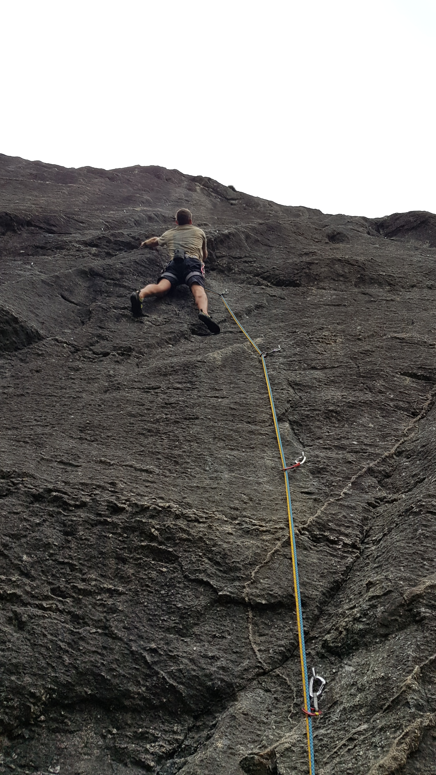 Half a dozen routes, all 6a to 6bish, and the threatened storm has done little more than serve up light drizzle.