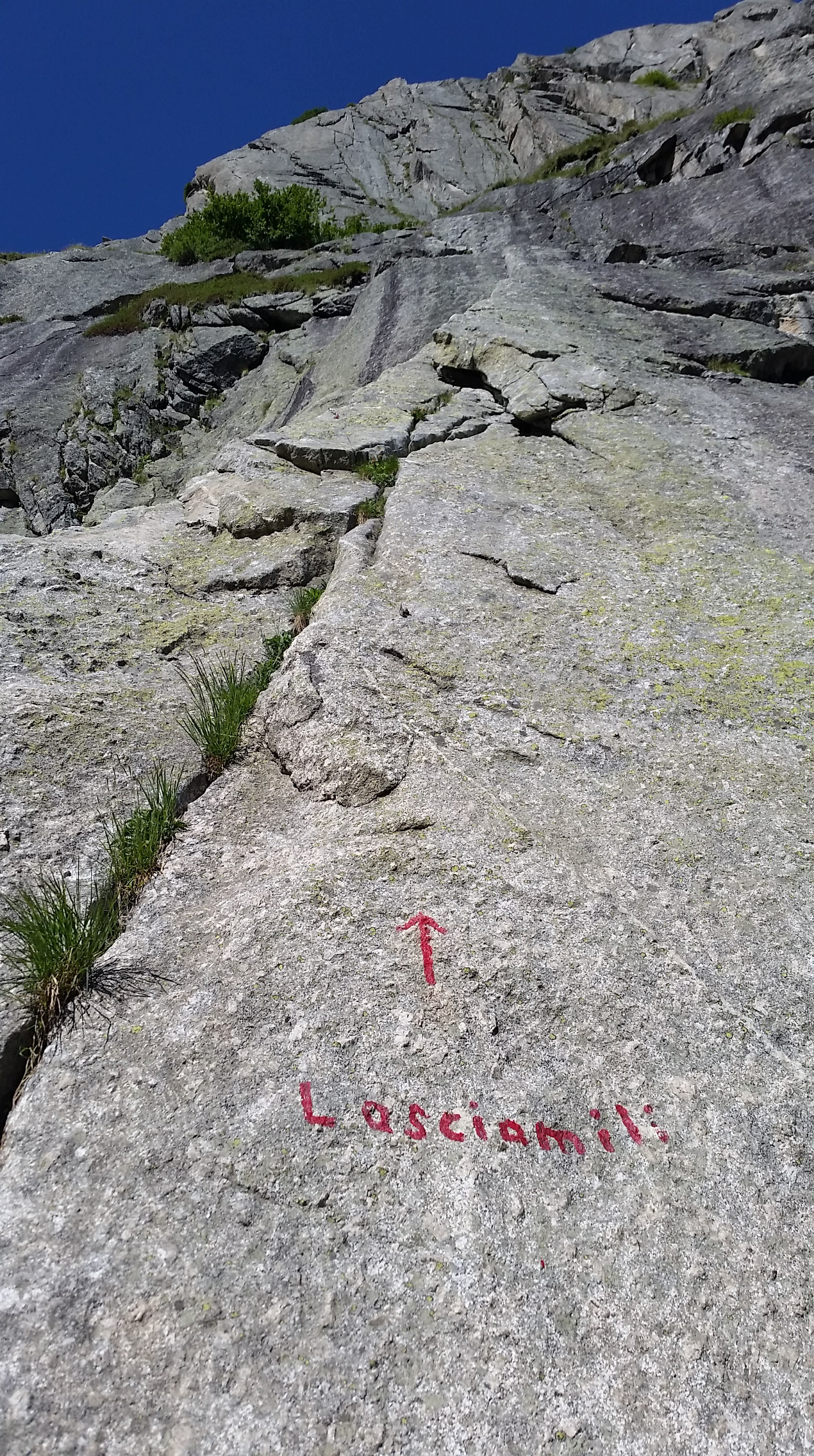 With a long day under our belts we fancied something a bit shorter, and maybe a tad harder. Lasciamili, a 6 pitch 6b which we could rap off fitted the bill perfectly.